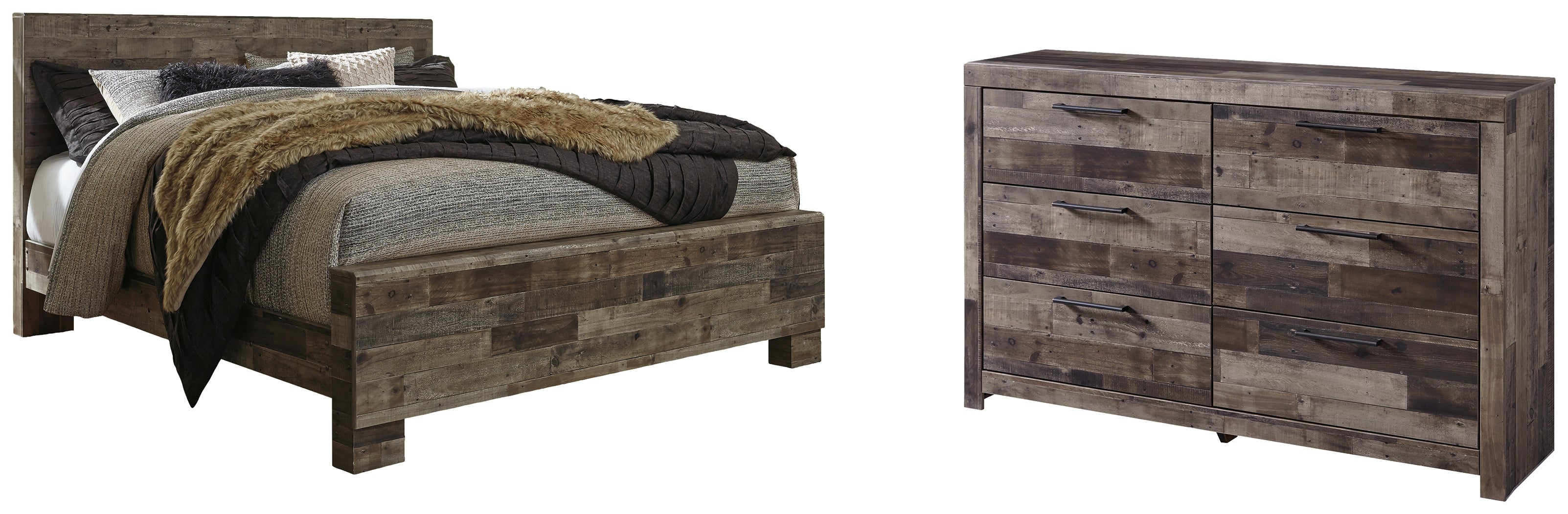 Includes panel bed (headboard, footboard and rails) and 6-drawer dresser