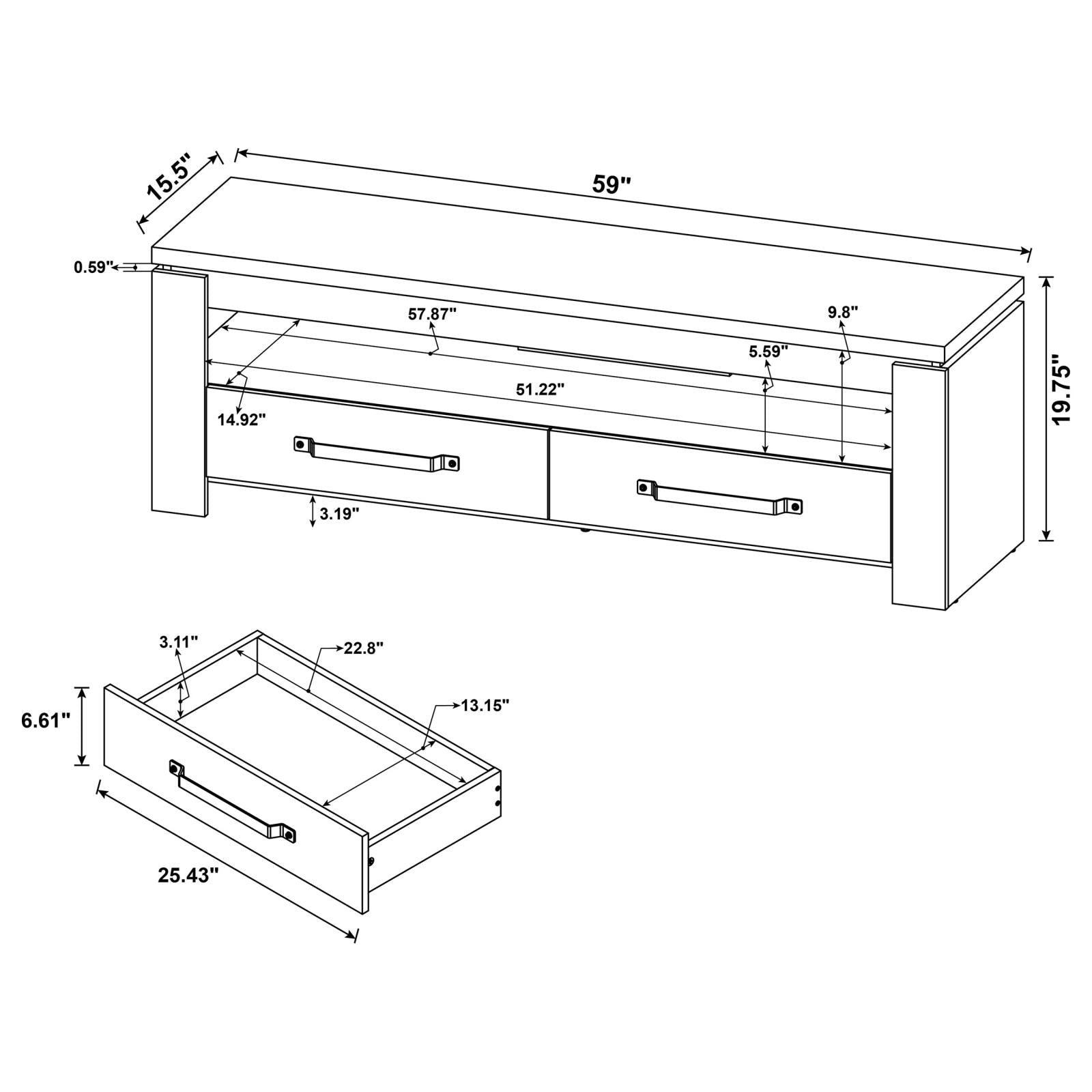 Tv Stand 59.00"L X 15.50"W X 19.75"H