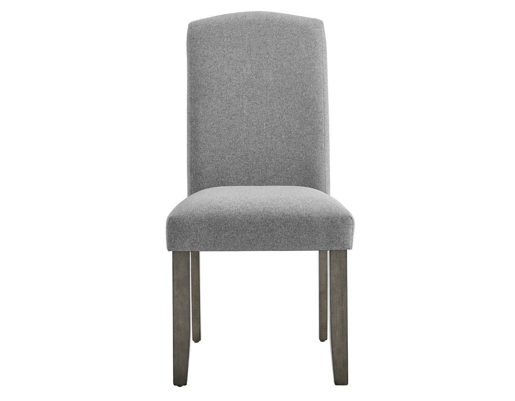 Transitionally styled and upholstered for comfort, the Emily Side Chair offers fashion-neutral styling in a seat for use as a dining, office or guest chair. A mossy grey finish covers the solid wood tapered legs that offer a gentle contrast to the polyester grey fabric that offers pleasing durability and wearability. The arched crown back offers an elegant touch to this chair that works well in casual or more sophisticated settings.
