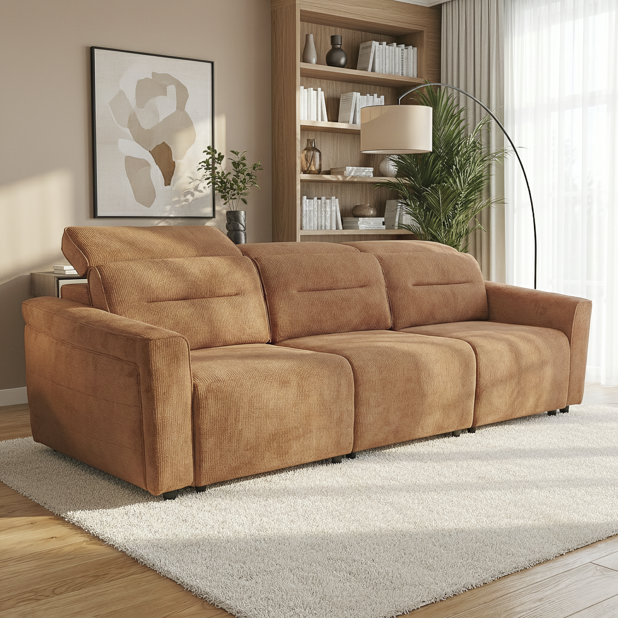 Picture slow Sunday mornings stretched out with coffee, movie nights that feel like true home theater seating, or evenings spent recharging your phone while you recharge yourself thanks to integrated USB-A and USB-C ports. This 3-seater sofa naturally becomes the family relaxation hub, fitting seamlessly into living rooms, media rooms, or apartments where comfort and flexibility matter most. Easy-clean surfaces and minimal assembly keep life simple.