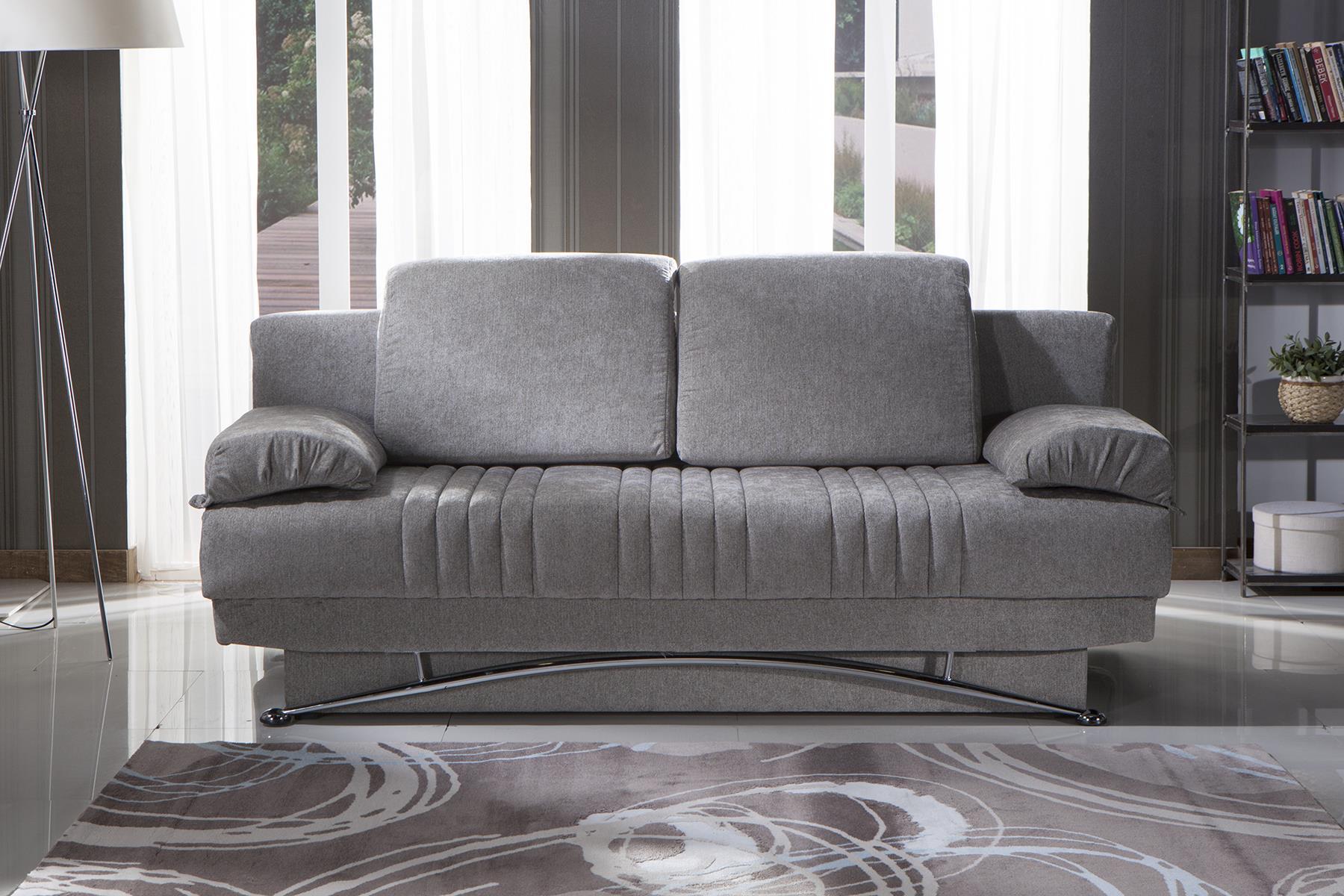Fantasy Valencia Grey Plain Fabric 3-Seat Sleeper Sofa