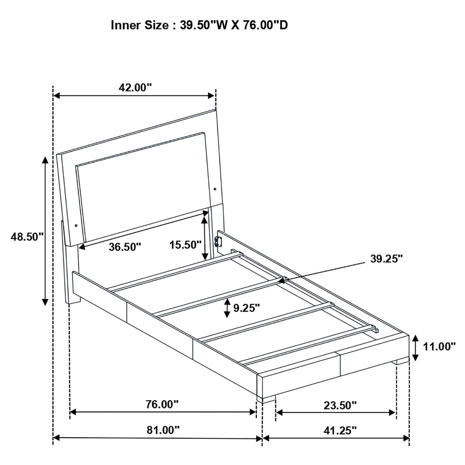 Twin Bed 42.25"L X 81.00"W X 48.50"H