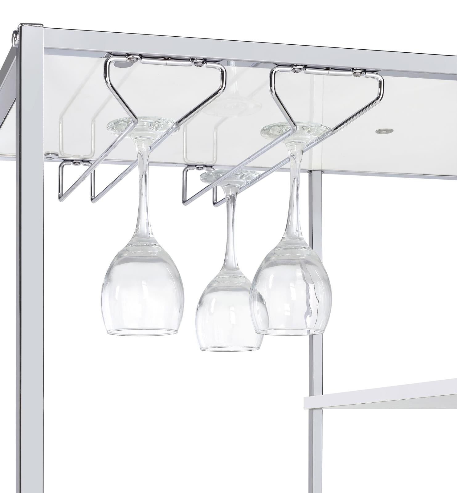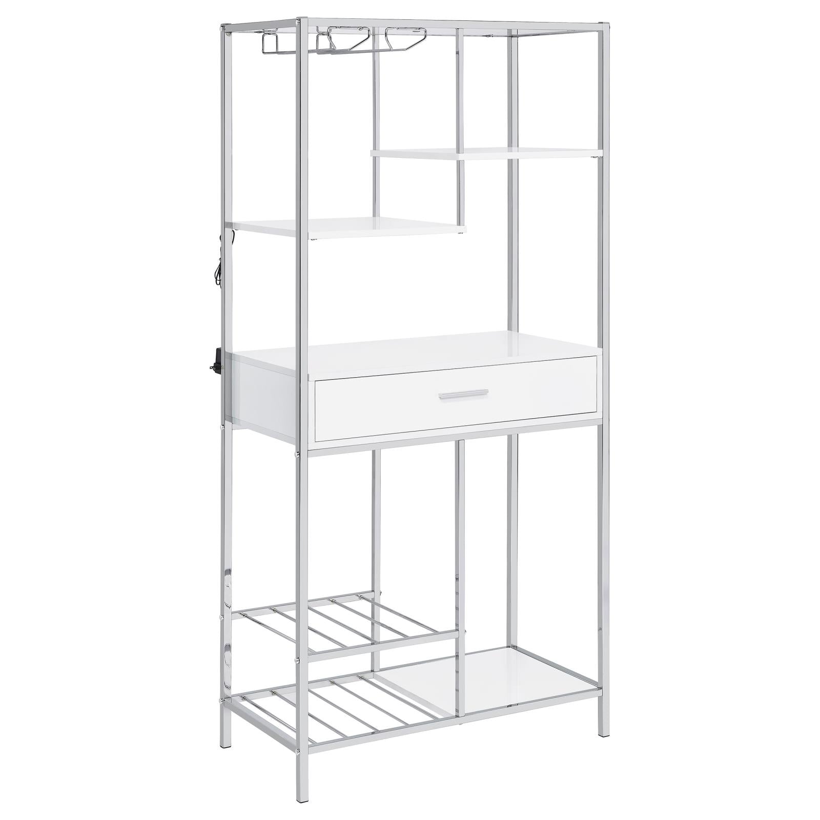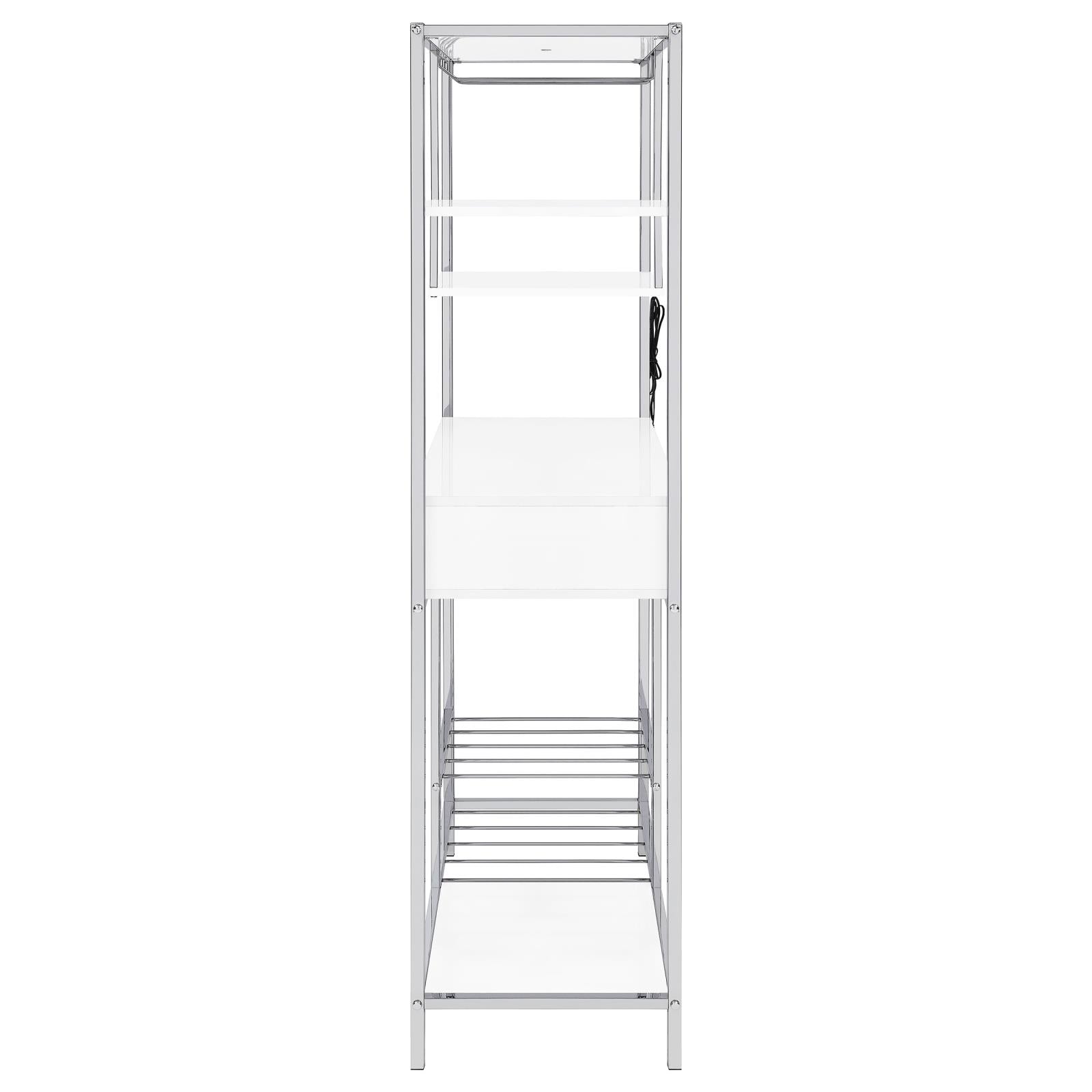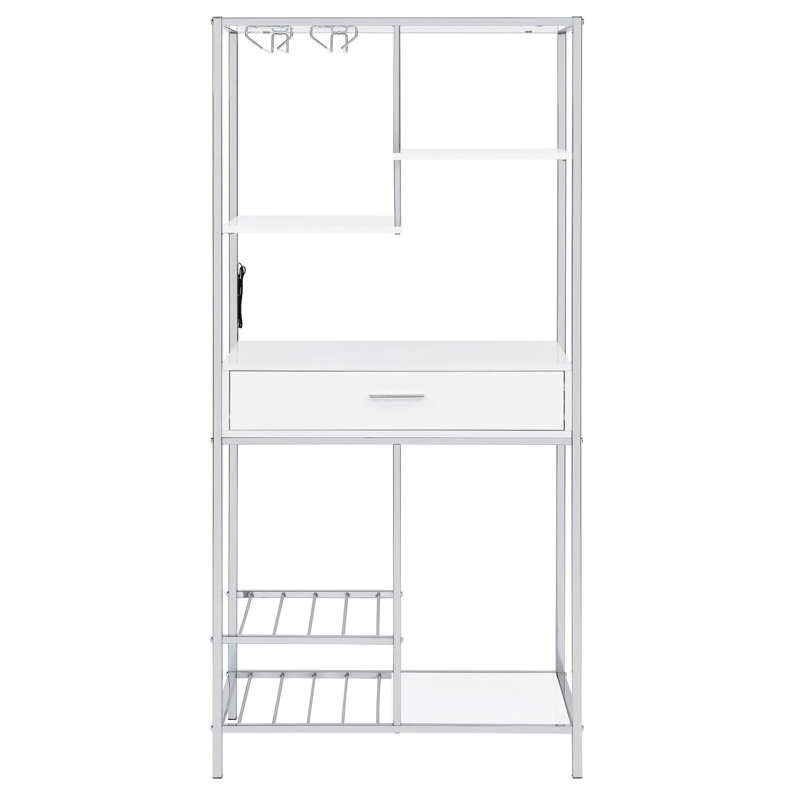 Figueroa White High Gloss and Chrome 5-Shelf Wine Cabinet with Storage Drawer