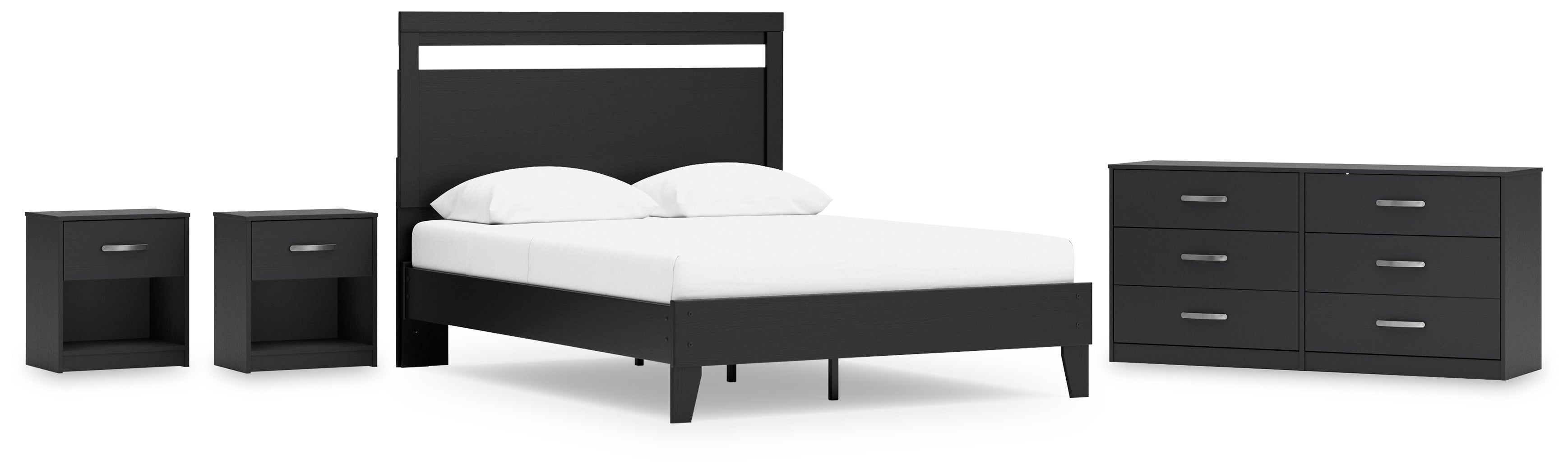 Finch Queen Panel Platform Bed with Dresser and 2 Nightstands in Black/Brown