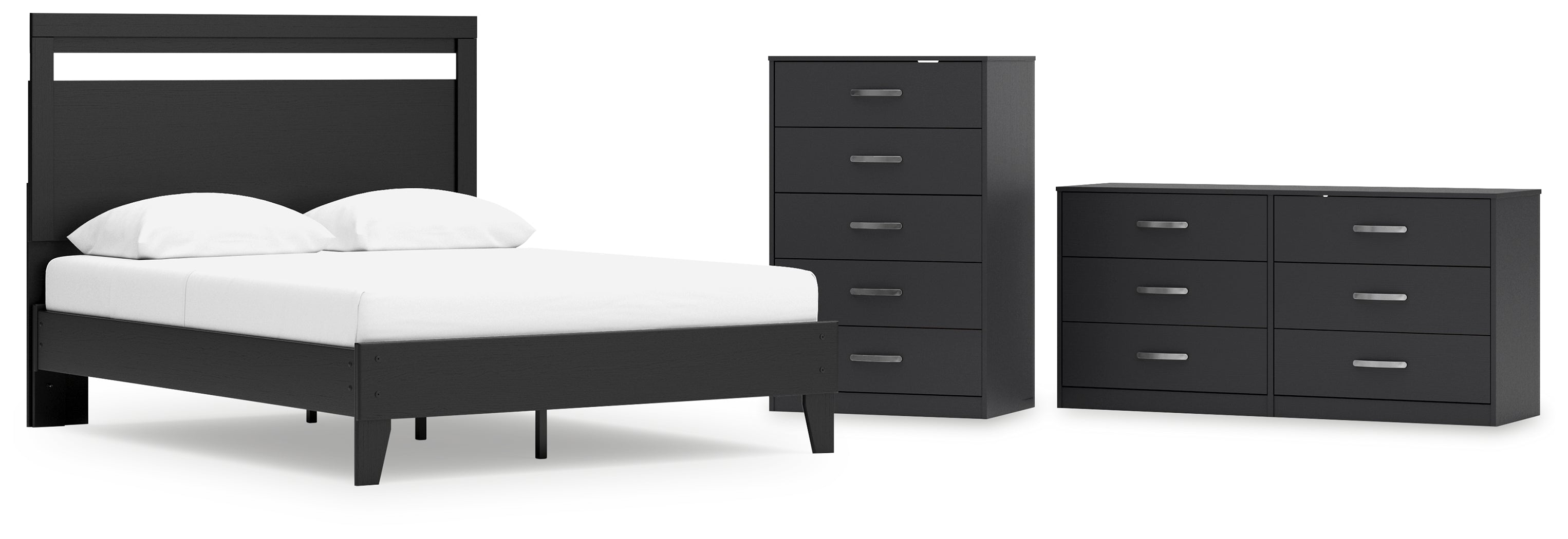 Finch Queen Panel Platform Bed with Dresser and Chest in Black/Brown