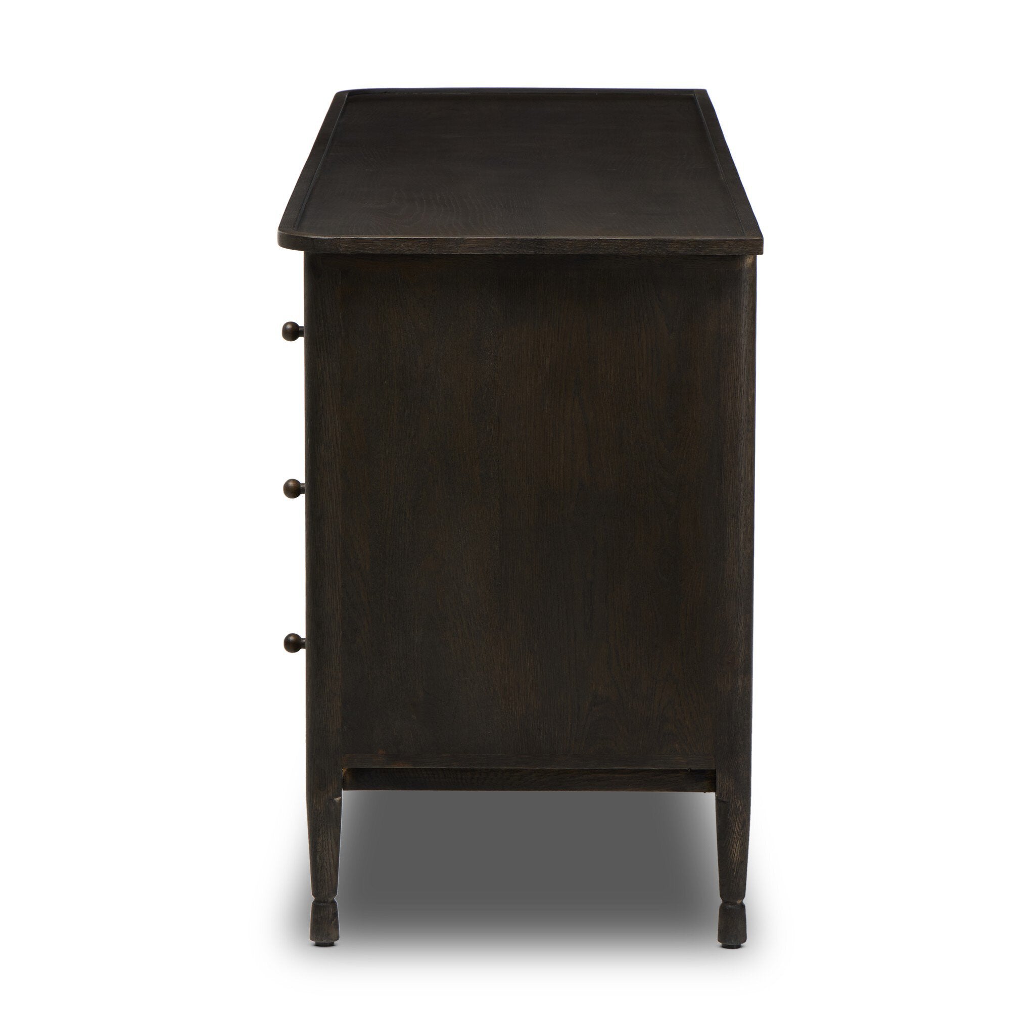 Heritage-inspired while modern, set on tapered legs with a subtle turn and showcasing an overhanging top with a distinctive lip edge. Simple hardware complements this dresser's leg design, all in a dark oak finish. A design collaboration by Amber Lewis and Four Hands. This item has limited online distribution and may not be sold on websites without prior approval. Visit the FAQ page in our Help Center for more details. — Luna Furniture introduces Franny 6 Drawer Dresser in Espresso Oak Veneer to enhance the beauty of your living spaces.