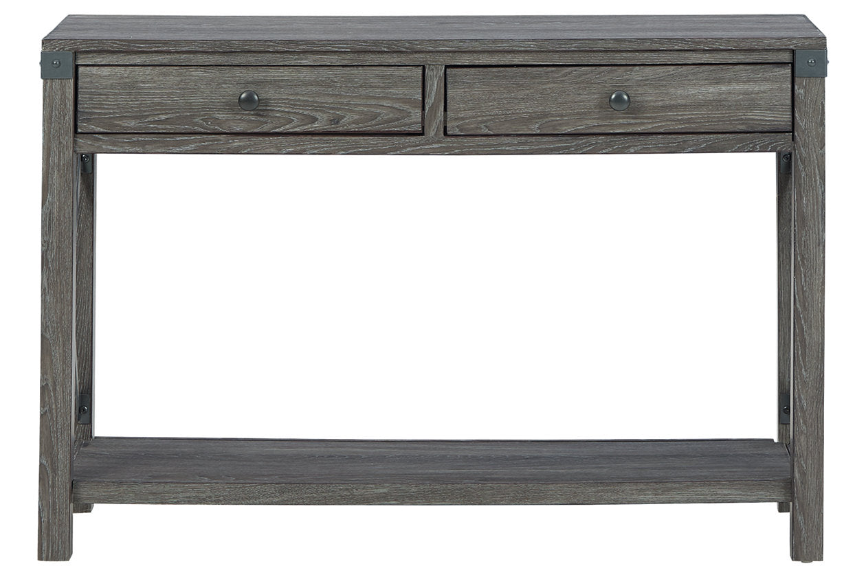 Open the door to modern farmhouse style with this console table. The beautiful woodgrain look and classic crossbuck metal accents are a cool touch, while the lower shelf provides surface space for fashionable home accessories. A pair of smooth-gliding drawers is the answer to the daily, where-are-my-keys question. — Luna Furniture introduces Freedan Sofa/Console Table to enhance the beauty of your living spaces.