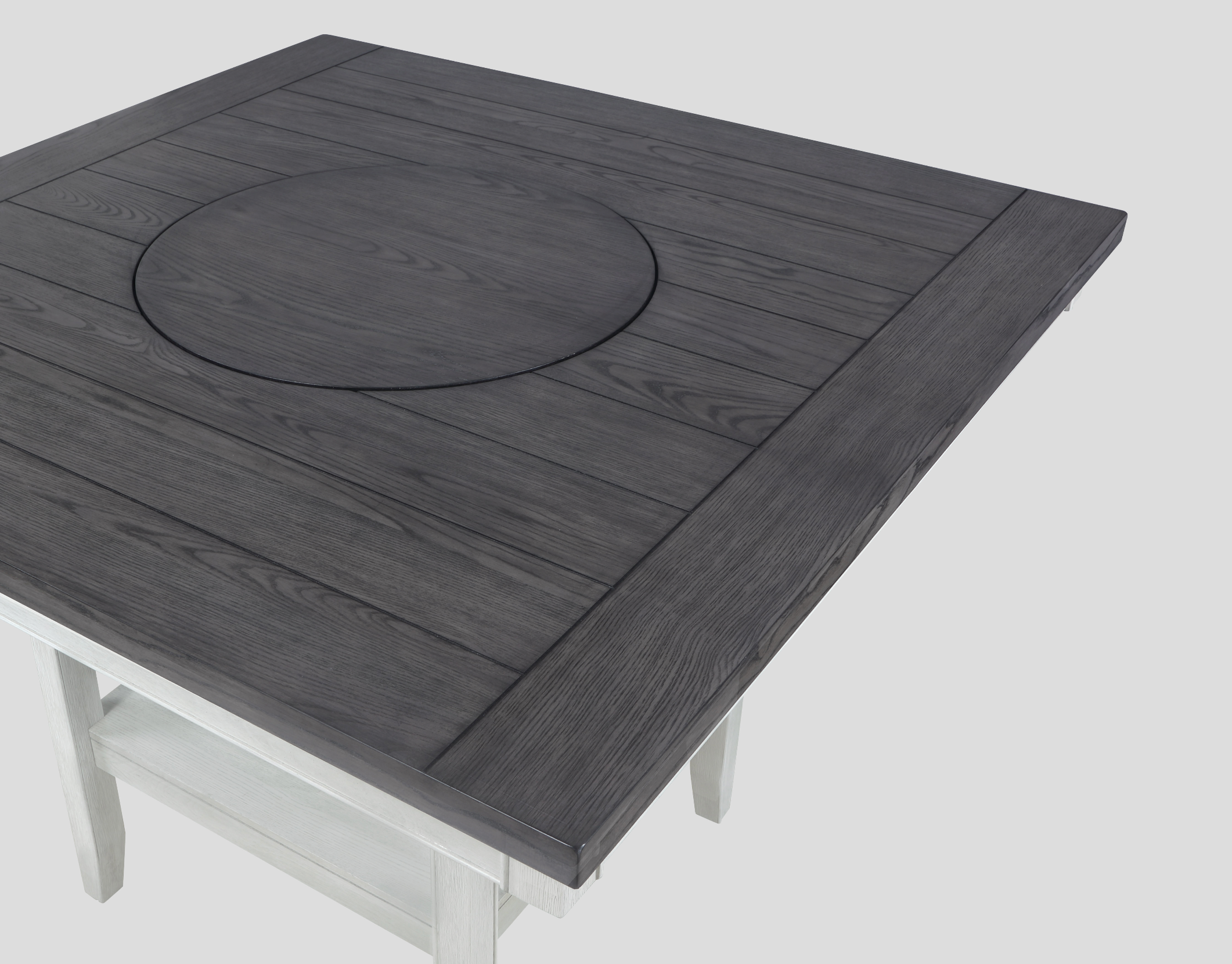 2727CG-T-4848 FULTON COUNTER HT. TABLE WHITE 47.8" X 47.8" X 35.5"H & W/20"BEIGE PU MARBLE LAZY SUSAN