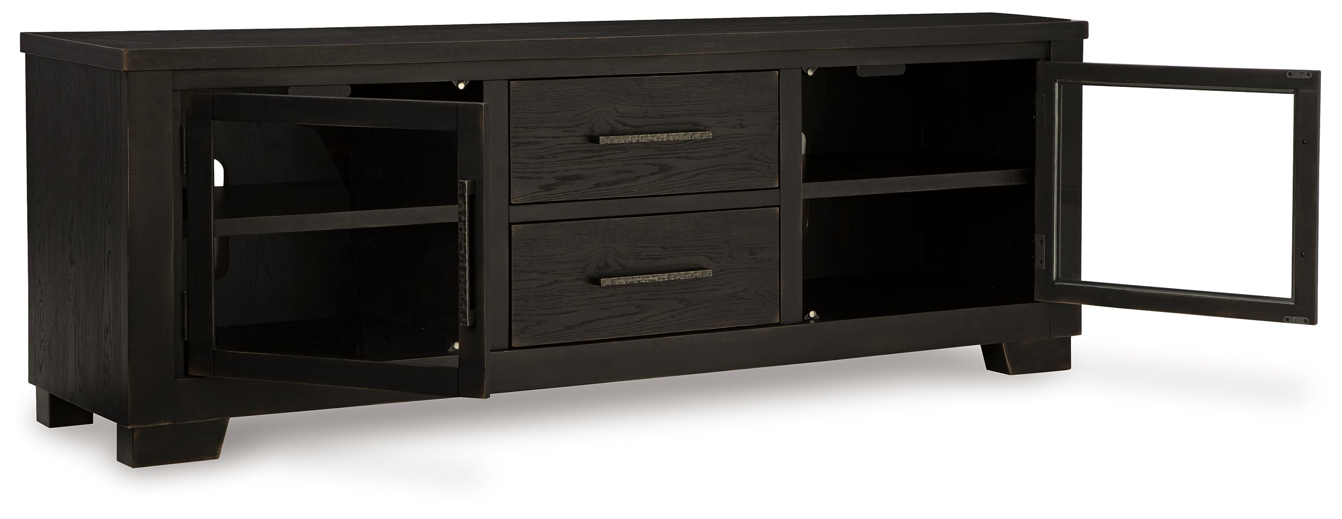 This TV stand brings a rustic vibe to urban contemporary design. It’s a modern approach to natural beauty, with the worn black finish giving your living room a gently aged charm. Console and media storage is made easy with cabinets and drawers. And the stunning simplicity of its color palette allows you to seamlessly coordinate this TV stand with your existing decor. — Luna Furniture introduces Galliden 80" TV Stand to enhance the beauty of your living spaces.