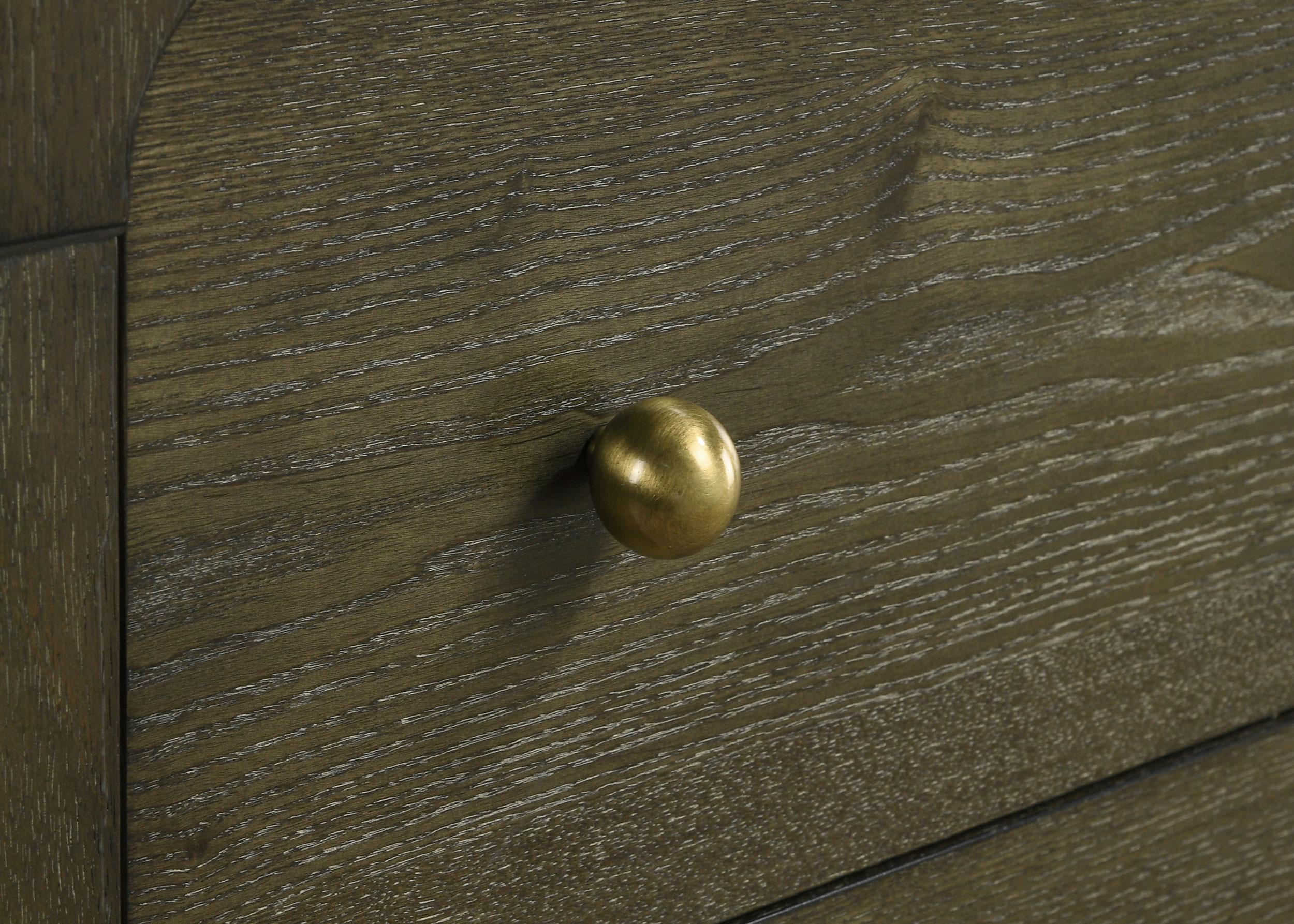 Maximize your bedroom storage with this stylish chest, featuring a transitional design with rounded corners and trending details. The dark cocoa finish and brass knobs add a touch of elegance, while the solid wood drawer box with English dovetail joinery ensures durability. The chest includes felt-lined top drawers and 45mm metal ball-bearing glides for smooth functionality. Crafted from solid hardwood, ash veneer, and MDF, this chest combines style and practicality.