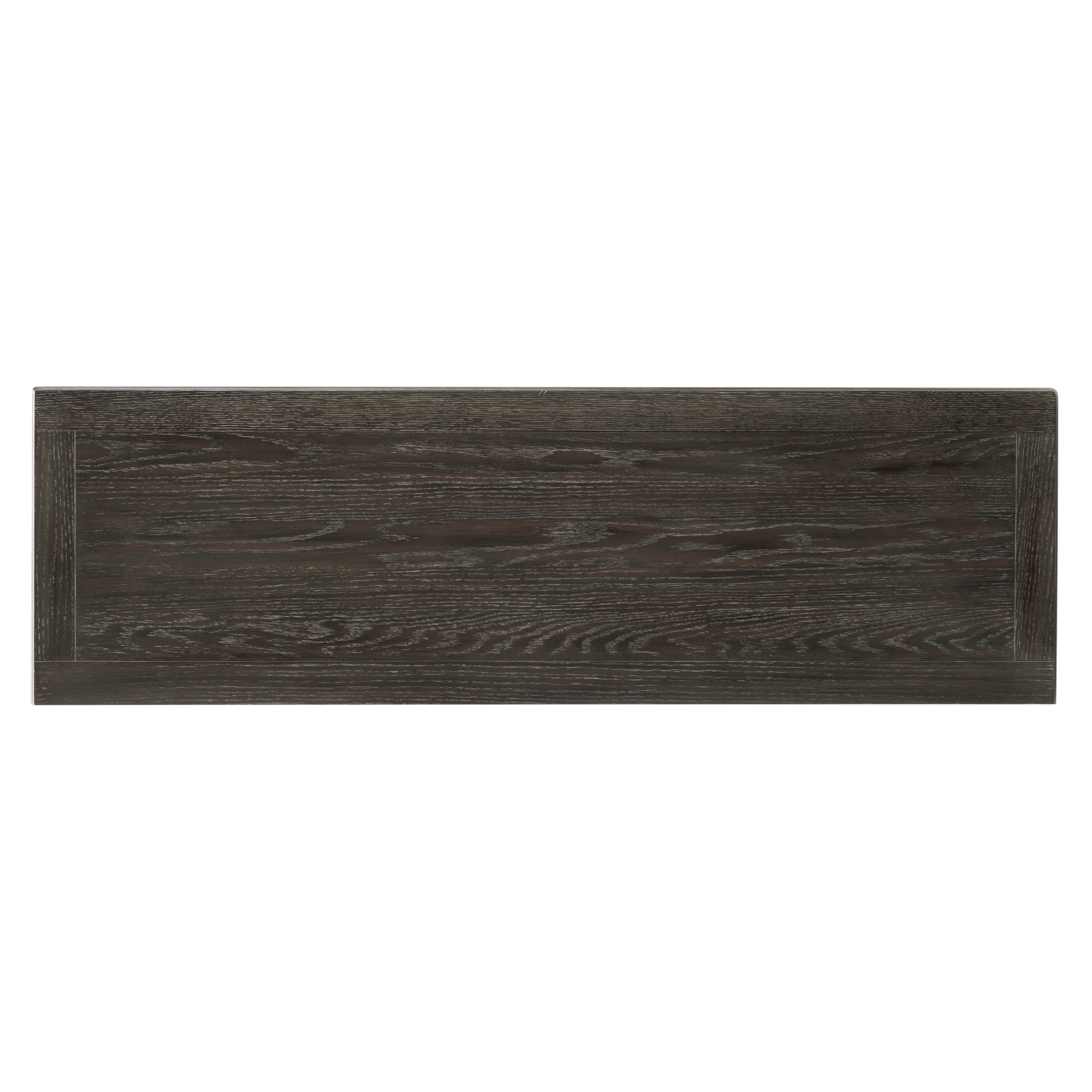 Inspired by the aesthetic of a casual country kitchen, the Granby Collection is an inviting gathering spot for mealtime with family and friends. The 3-door server provides ample space in which to store your tabletop accessories. The two-tone look of the acacia and pine solids base, finished in antique gray, and the oak veneer of the coffee-finished top, present as a harmonious combination of color, perfect for your home. The server doors feature dark metal knob hardware.