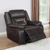 Take this terrific glider recliner and watch it become the favorite seat in your home. Performance-grade leatherette adds to its softness and comfort. This glider's aesthetics are enhanced with contrasting stitching that offers more stylish appeal. Pocket coil cushioning and padded armrests make for an extra cozy seating space. Enjoy the smooth gliding motion of this leather recliner and feel inspired to rest and relax.