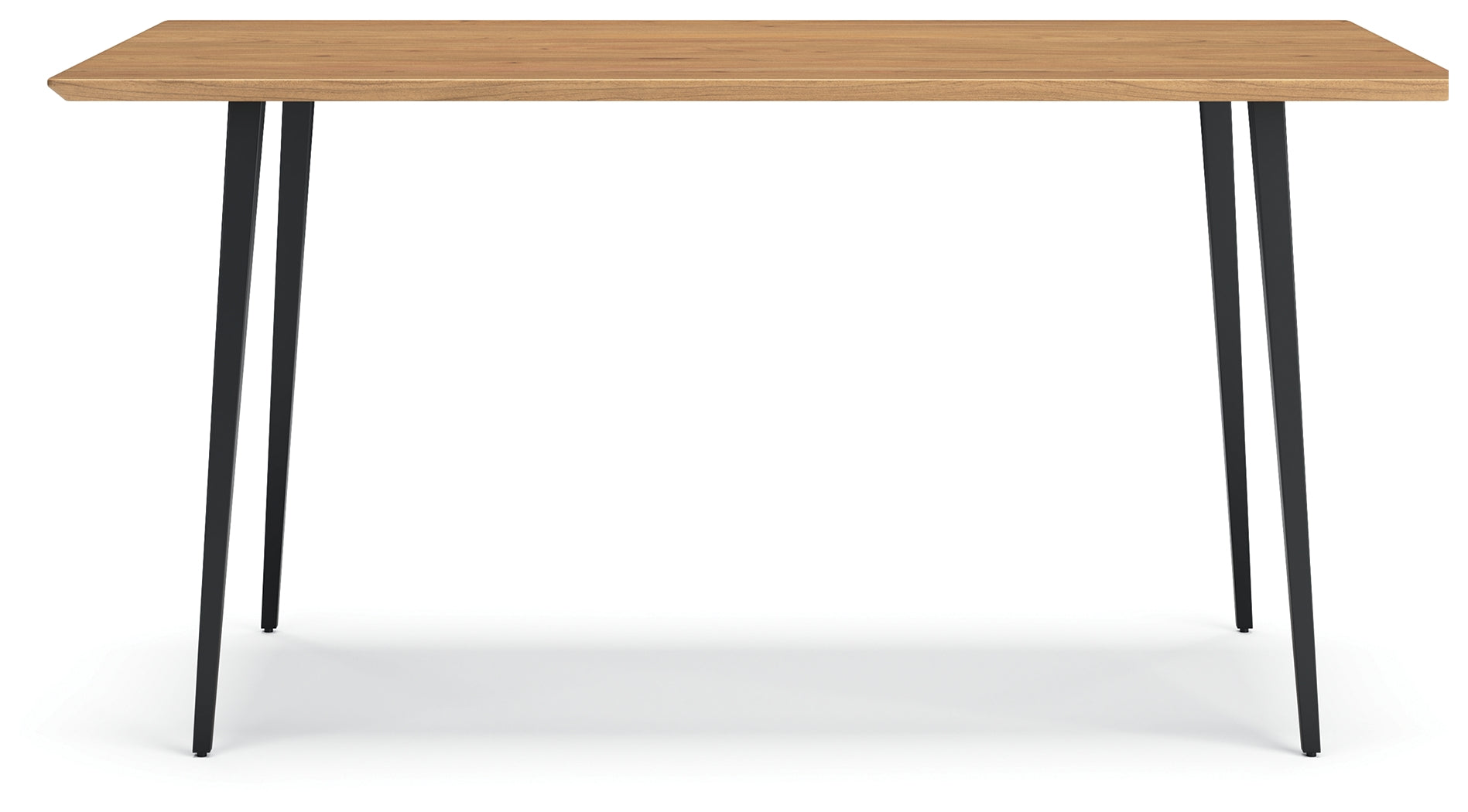 Small spaces don’t mean you have to sacrifice big style. This table sets the stage for casually cool dining. The welcoming light wood-tone top beautifully goes with the flow, while matte black metal legs add a layer of urban industrial flair. Merging everyday function with inviting design, it’s a simply chic addition to your dining room. — Luna Furniture introduces Gretlynn Dining Table to enhance the beauty of your living spaces.