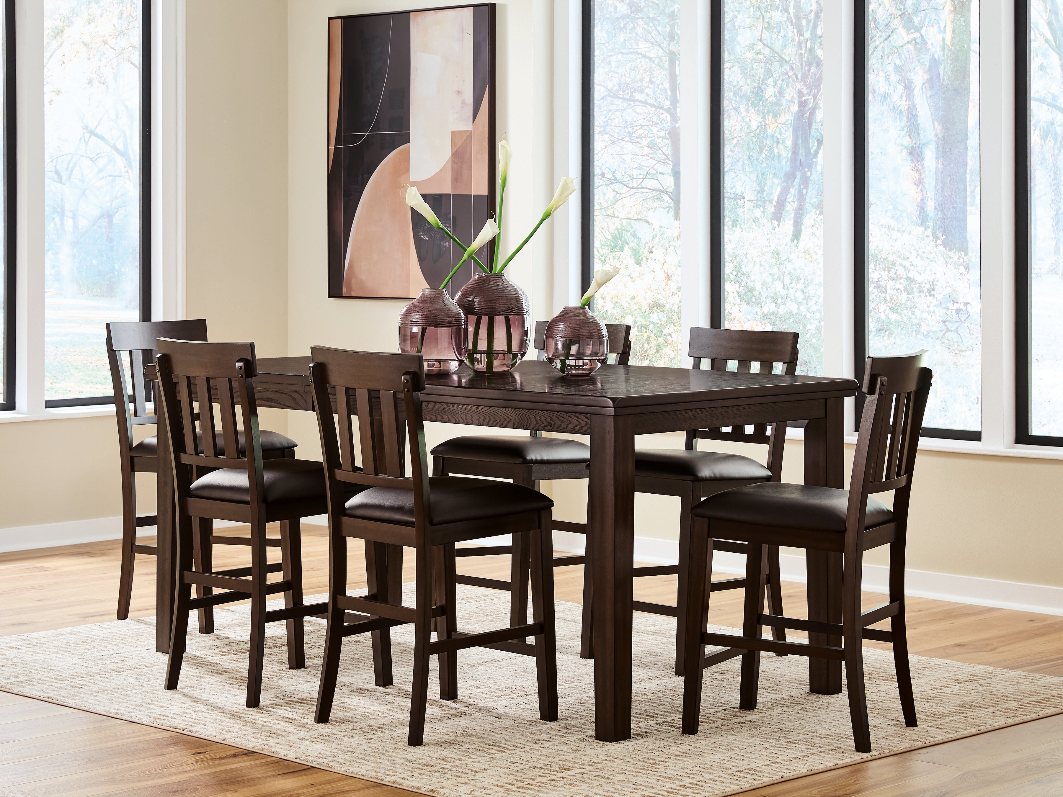 Haddigan Counter Height Dining Table and 6 Barstools in Dark Brown