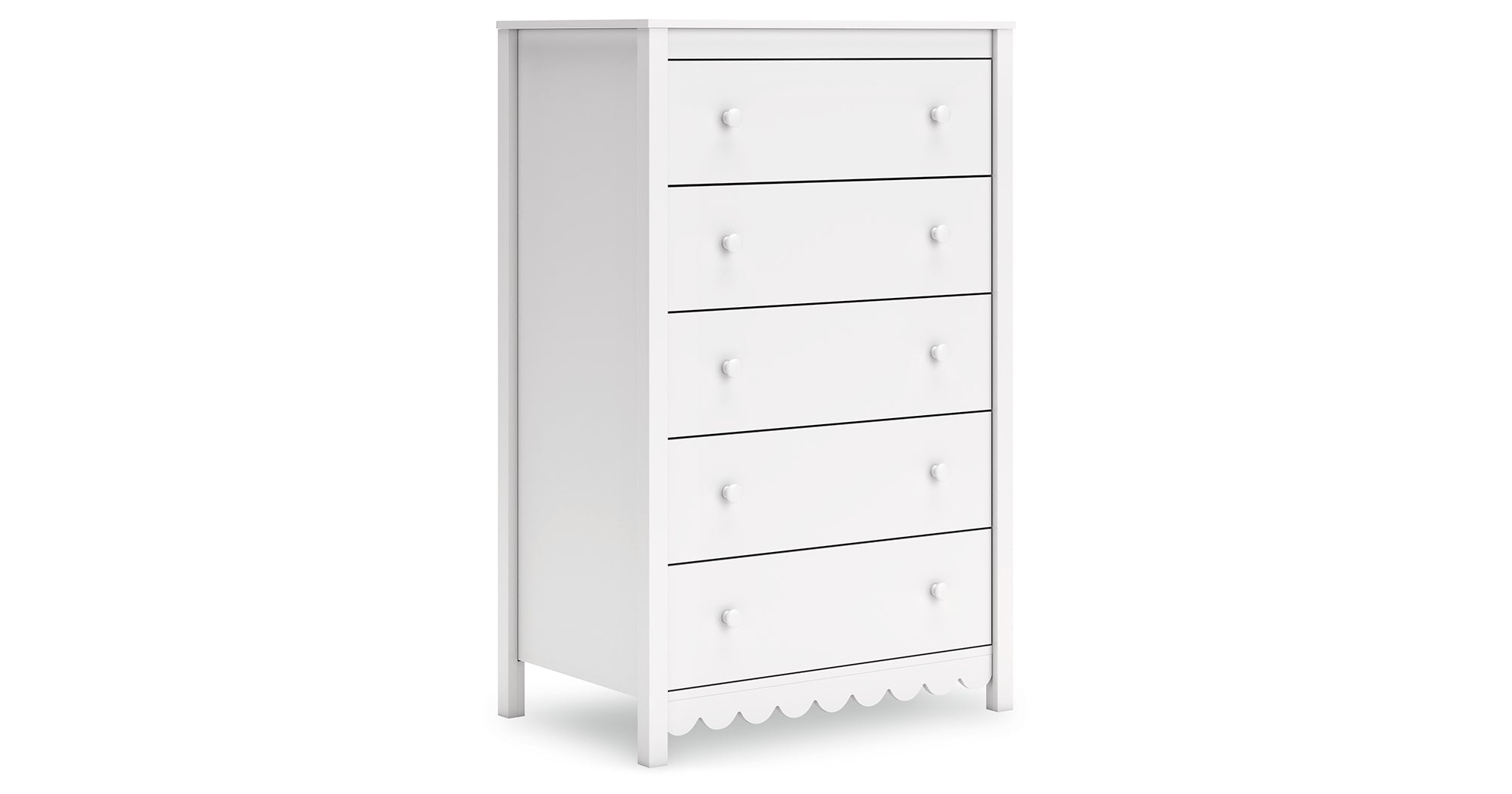 Thanks to its playful scalloped design, this bedroom package is the perfect fit for cottage or coastal farmhouse interiors. Its matte white finish offers the perfect backdrop to showcase your personal taste and creativity. The look is timeless. The feel? Right at home.