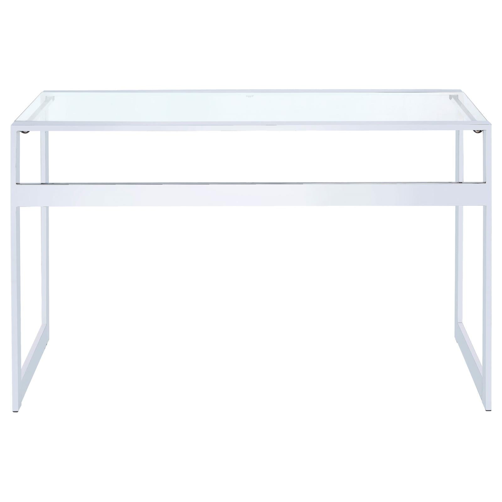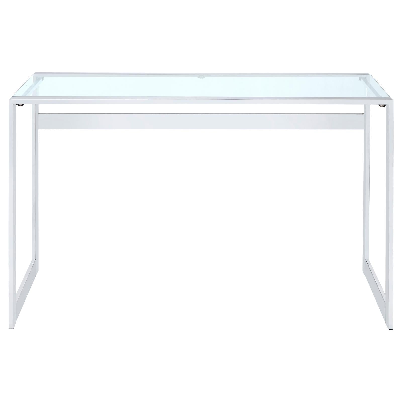 It's a writing desk that's perfect not only for writing, but also for designing ad brainstorming. Lay out the design plans or concepts across its spacious, clear tempered glass top. With its steel construction, it'll stand up to those all-night sessions of hashing out the perfect concept that'll change the world. Finished in chrome, the desk has the modern styling that inspires. This desk is the ideal piece in a contemporary commercial or home office.