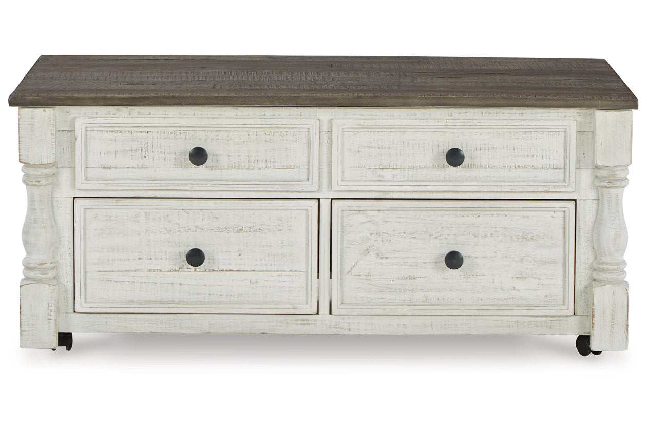 What a fresh interpretation of country classic style. Inspired by American farmhouse craftsmanship, but with an elevated sensibility, this occasional table set blends distinctive details such as turned post accents and raised drawer fronts for a substantial look that feels right at home. Those who appreciate rustic character should take note of the table’s thick crown moulding, beautified with a vintage two-tone finish. It features four storage drawers, a small concealed storage tray under the lift-top, and robust legs that are ready to stand the test of time. Luna Furniture introduces Havalance Lift Top Coffee Table and 2 End Tables to enhance the beauty of your living spaces.