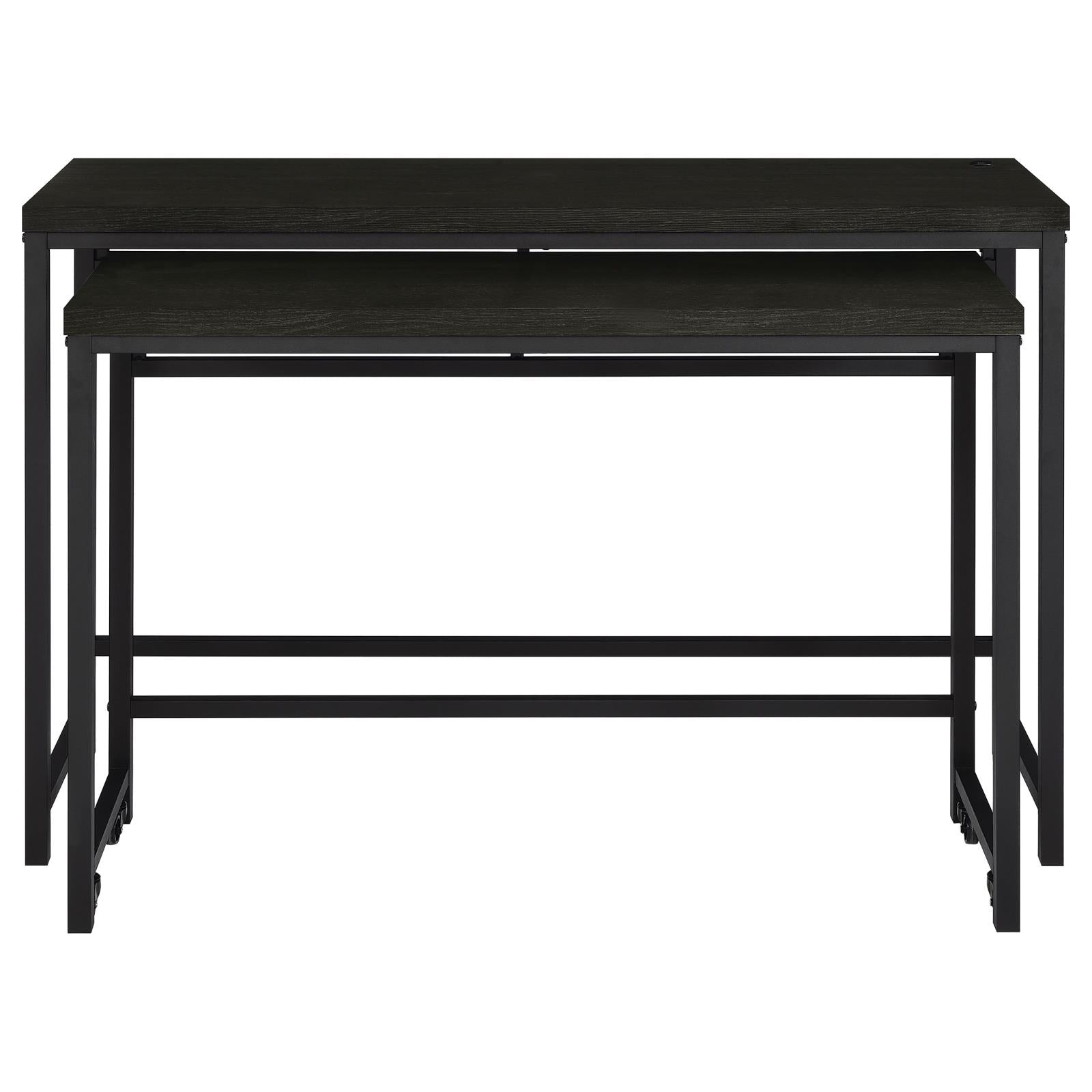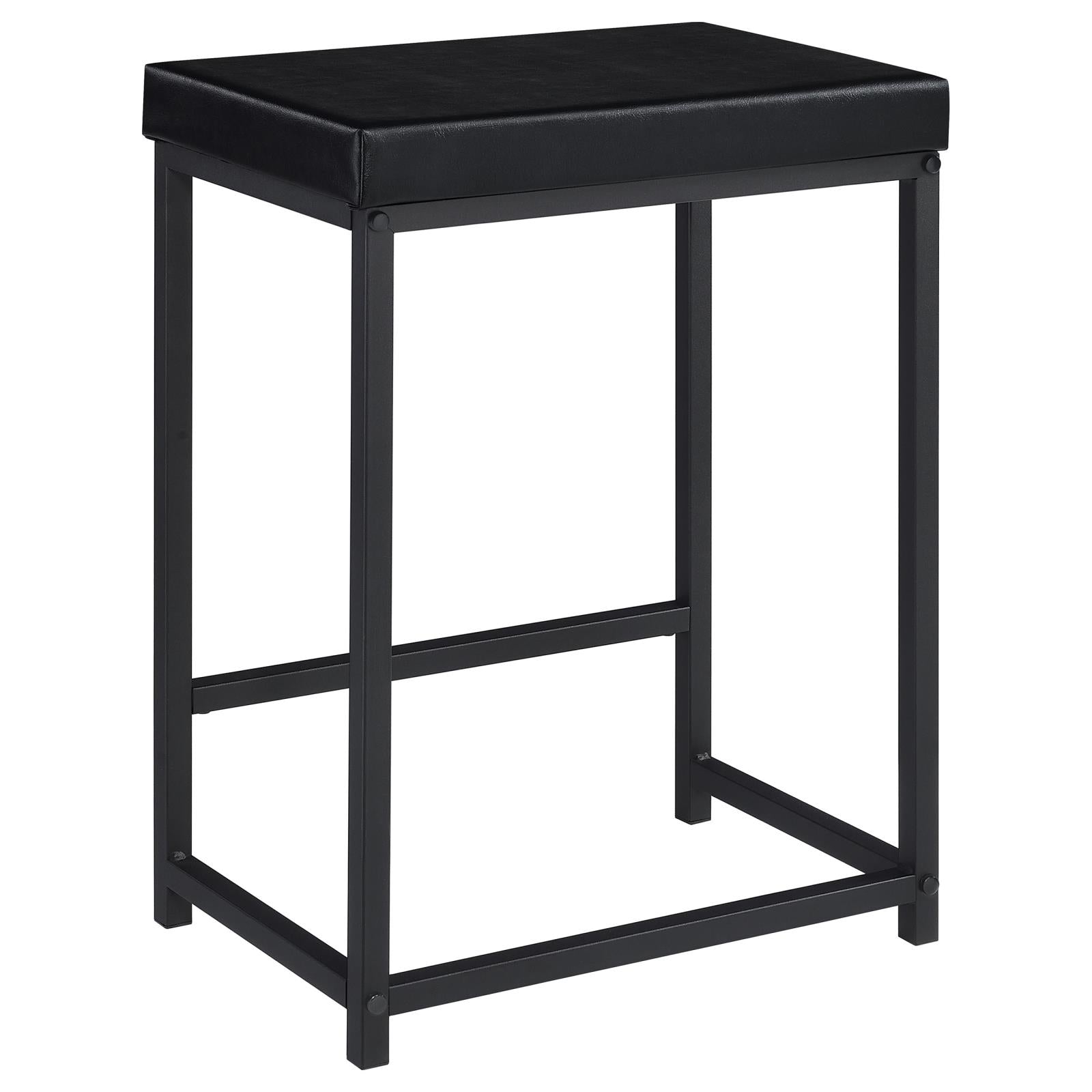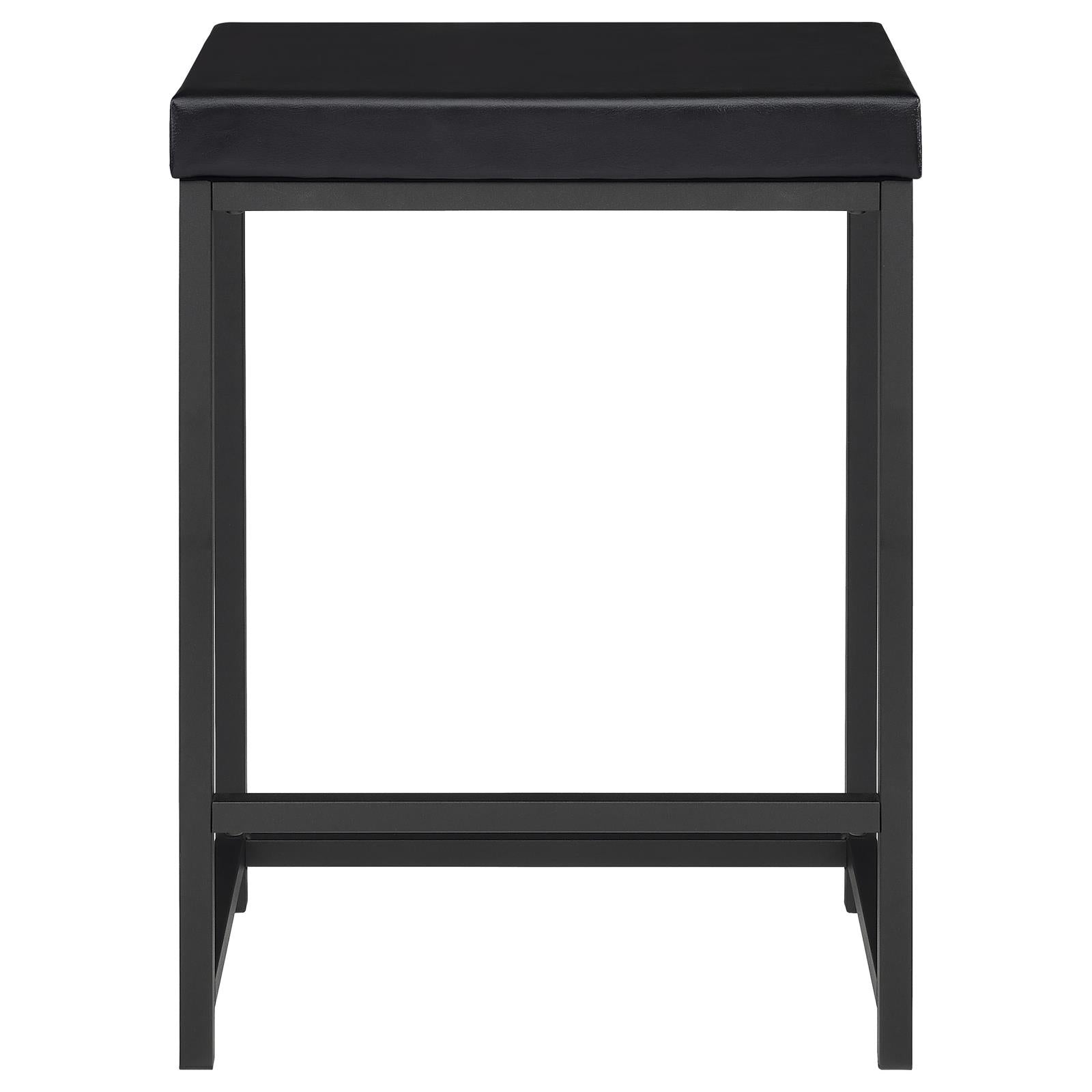 When space is at a premium, this modern four-piece counter height dining set does everything you need and more, easily serving as dining table, workspace, or homework spot. It features clean, crisp design with straight lights and square corners, all in a black finish that blends into surrounding decor in virtually any setting. The larger table includes a USB port in its top, while the smaller nesting table is on wheels that allow for easy movement to the perfect position for every occasion. Two stools are backless, with plush foam cushions and faux leather upholstery. Built in footrests offer added comfort and support for all to enjoy.