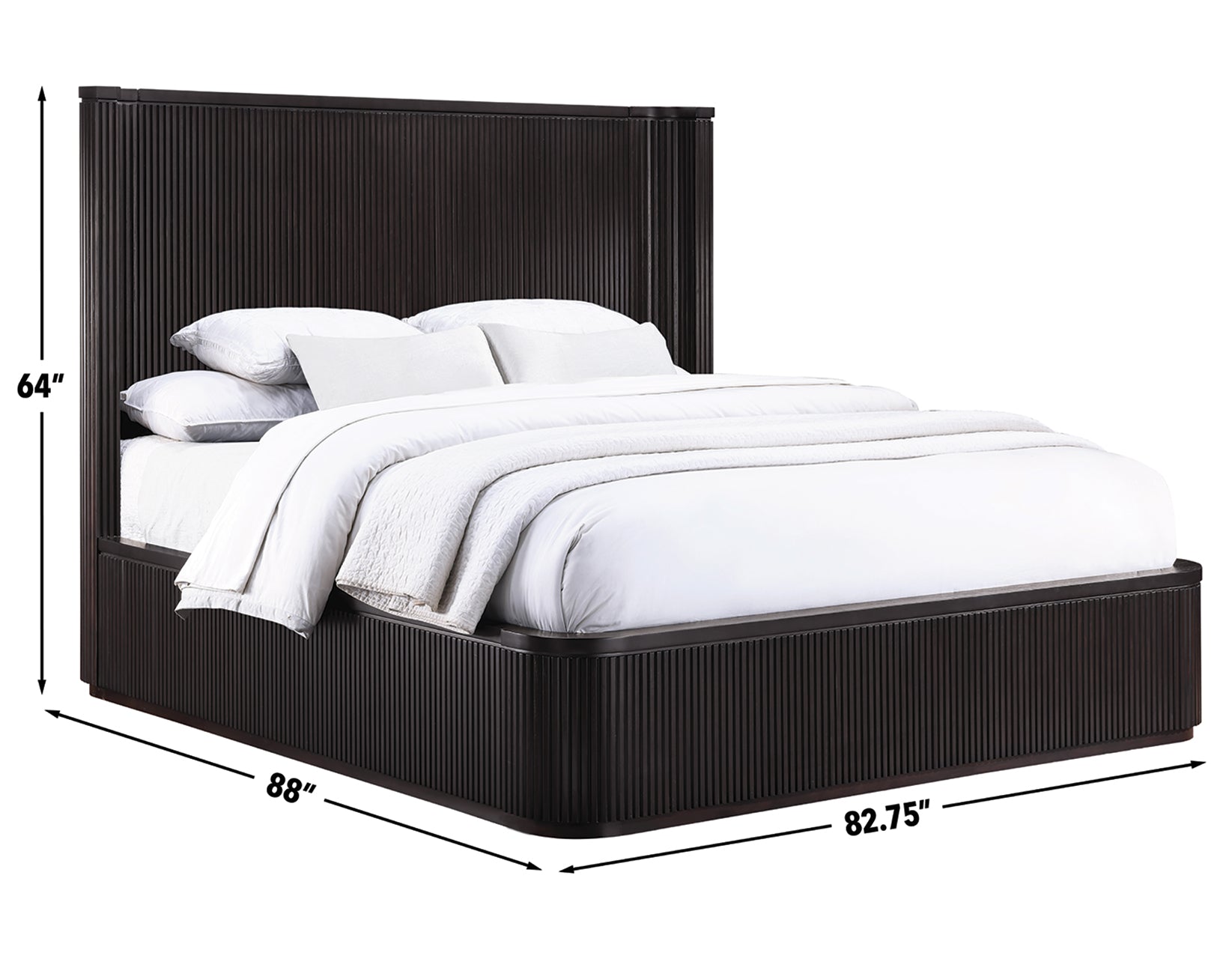 The Henry King Bed combines sleek modern design with softened edges, rounded corners, and elegant reeded detailing. Crafted from sturdy oak veneers in a lustrous espresso finish, it brightens the space and serves as a stylish yet understated anchor for your room. The headboard’s inverted corners provide a cozy nook, ideal for reading, watching TV, or relaxing in comfort.