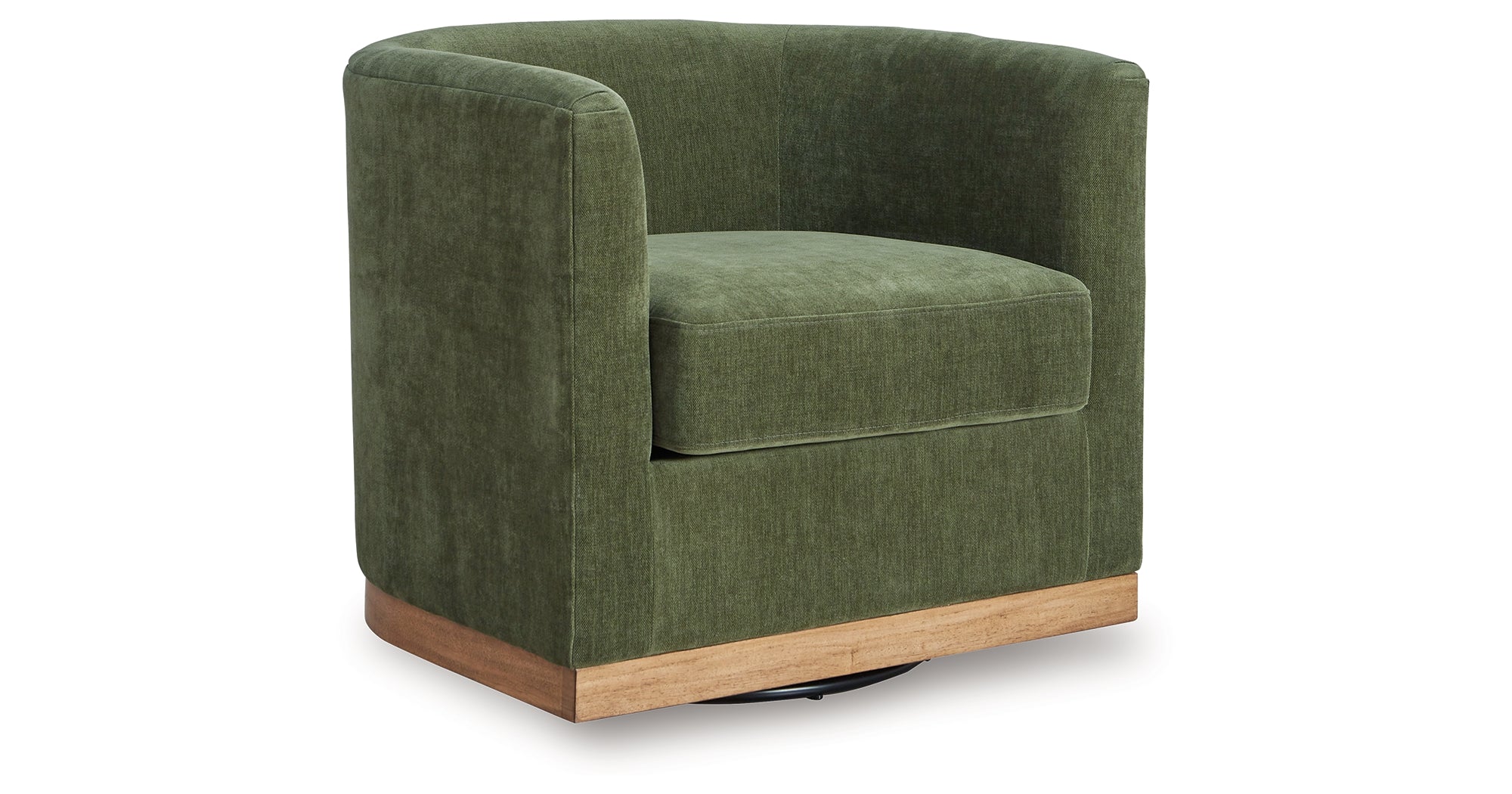 Take contemporary style for a spin with this accent chair. Handsome in a deep forest green, it adds a splash of sophistication to a reading nook or living room. The chair's handy swivel base ensures you can always find your perfect angle, while wood accent trim perfectly punctuates the look. — Luna Furniture introduces Jersonlow Swivel Accent Chair to enhance the beauty of your living spaces.