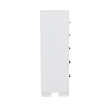 Pull together your bedroom decor with the stylish simplicity of this six-drawer chest. Bold and modern, its attractive design lends a pleasing touch of contemporary appeal. Its six sizable drawers allow for spacious storage to help you stay organized. Its soft, white finish and simple silver tone bar handles infuse it with elegant simplicity. Crafted from solid wood, this table enhances any bedroom with sturdy, durable glamour.
