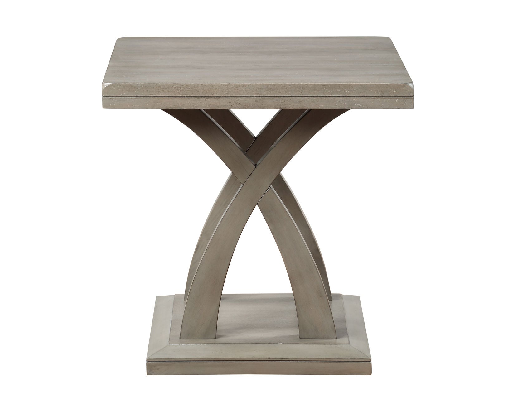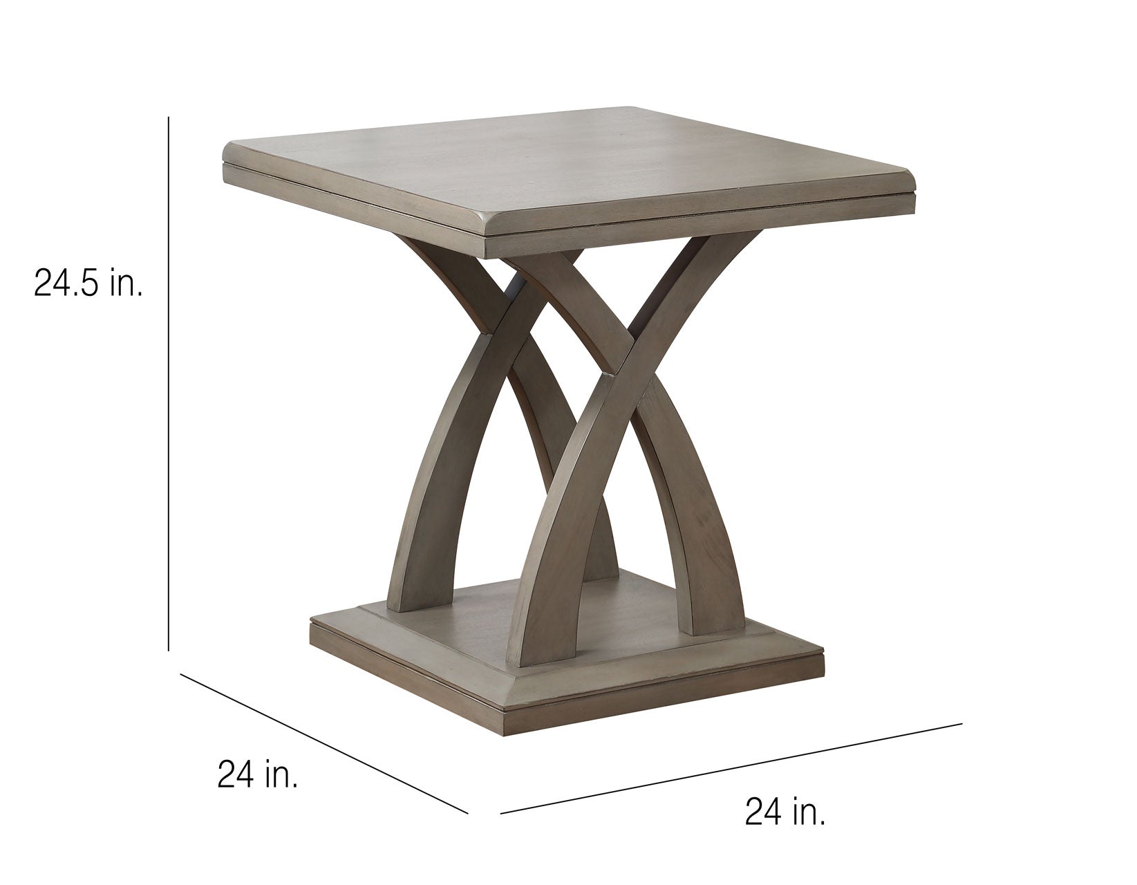 The Jocelyn Grey End Table combines flowing modern lines with a neutral finish in a casual table that blends beautifully with modern decors. A square tabletop and base lend a pleasing sense of symmetry with a flowing artistic base that combines round and square lines perfectly.