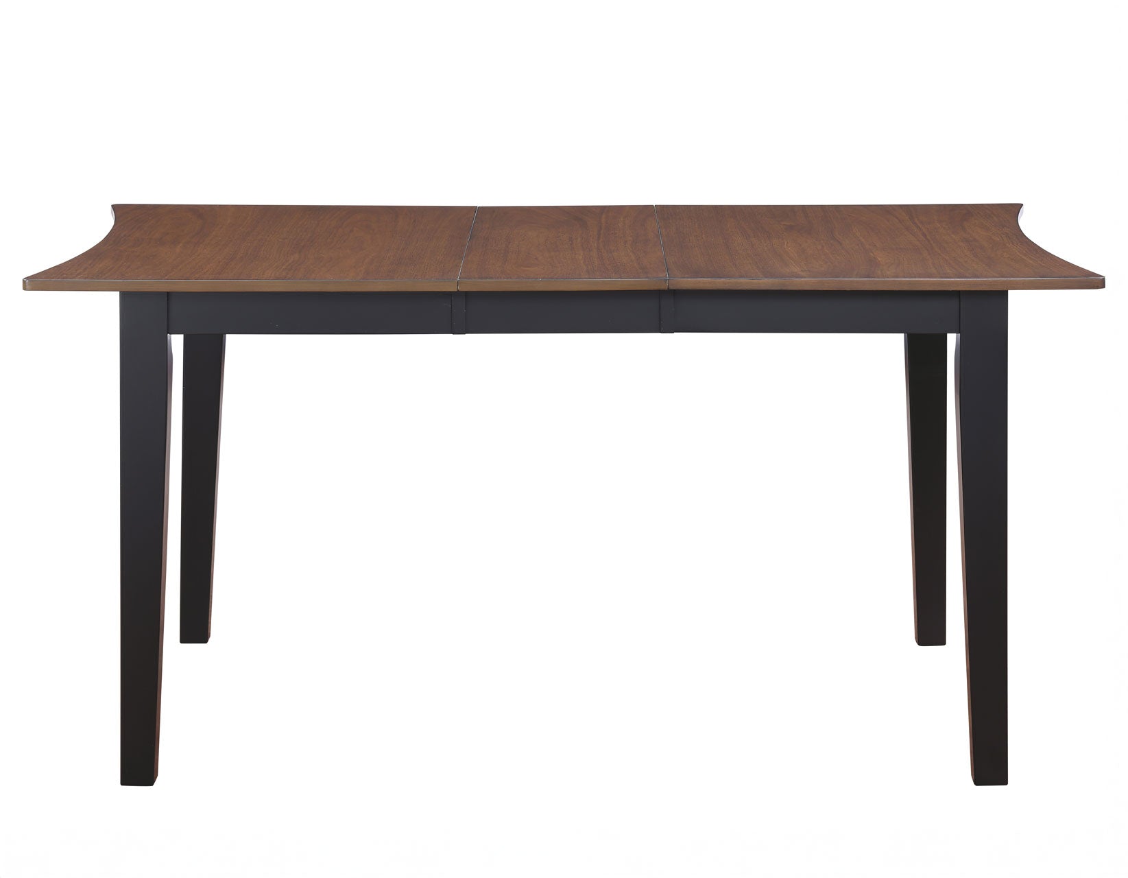 The Joplin 50-62″ Dining Table blends modern functionality with elegant design. A striking walnut veneer top is complemented by ebony-finished solid wood legs for rich contrast, while concave edges at each end add a pop to the overall presentation. Perfect for apartments or cozy dining areas, this transitional piece fits beautifully into any space. Need more room? A 12″ leaf expands the table to 62″, comfortably seating six. Compact yet captivating, the Joplin table offers style and versatility in one smartly designed package.