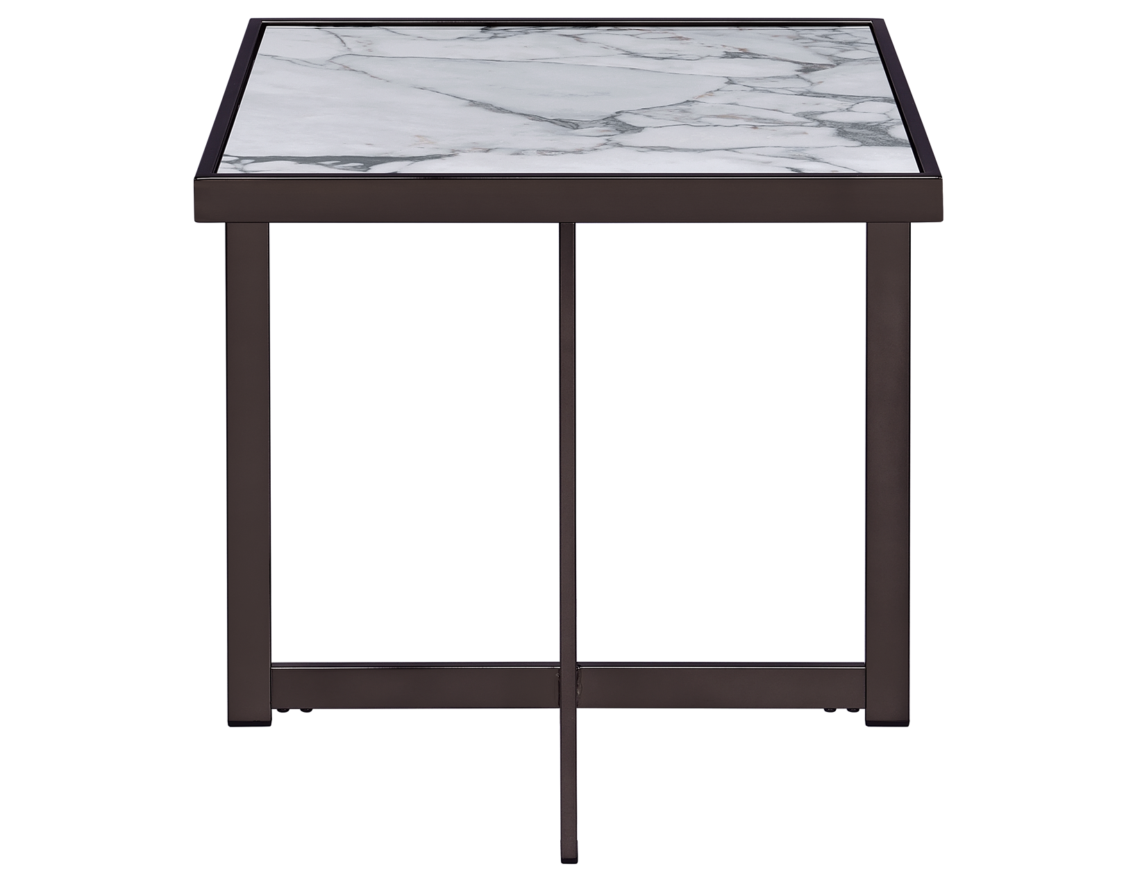 Sleek sophistication takes center stage with the Kayley sintered stone side table. This modern piece features a striking sintered stone inlay atop a black nickel-finished iron base, blending elegance and durability. A sled base with cross stretchers provides stylish support and lasting stability. Best of all, enhanced performance features reduce maintenance worries. With the Kayley table, your space stays effortlessly pristine. Perfect for contemporary settings, it’s a statement of refined taste and smart functionality—where modern design meets everyday convenience.