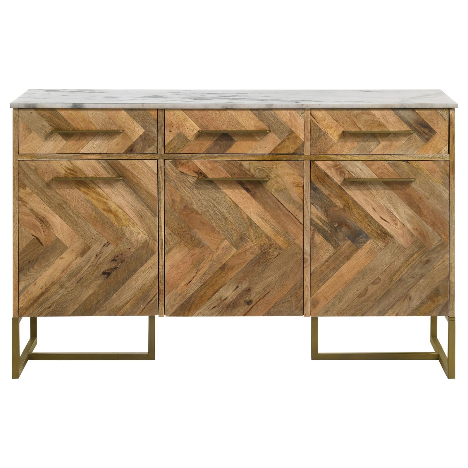Keaton Natural and Antique Gold 3-Door Accent Cabinet with Marble Top