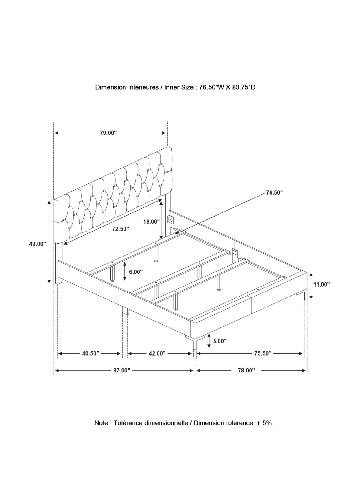 Eastern King Bed 80.00"L X 87.00"W X 49.25"H