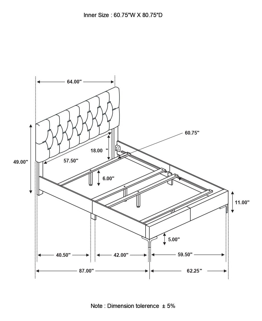 Queen Bed 64.25"L X 87.00"W X 49.25"H