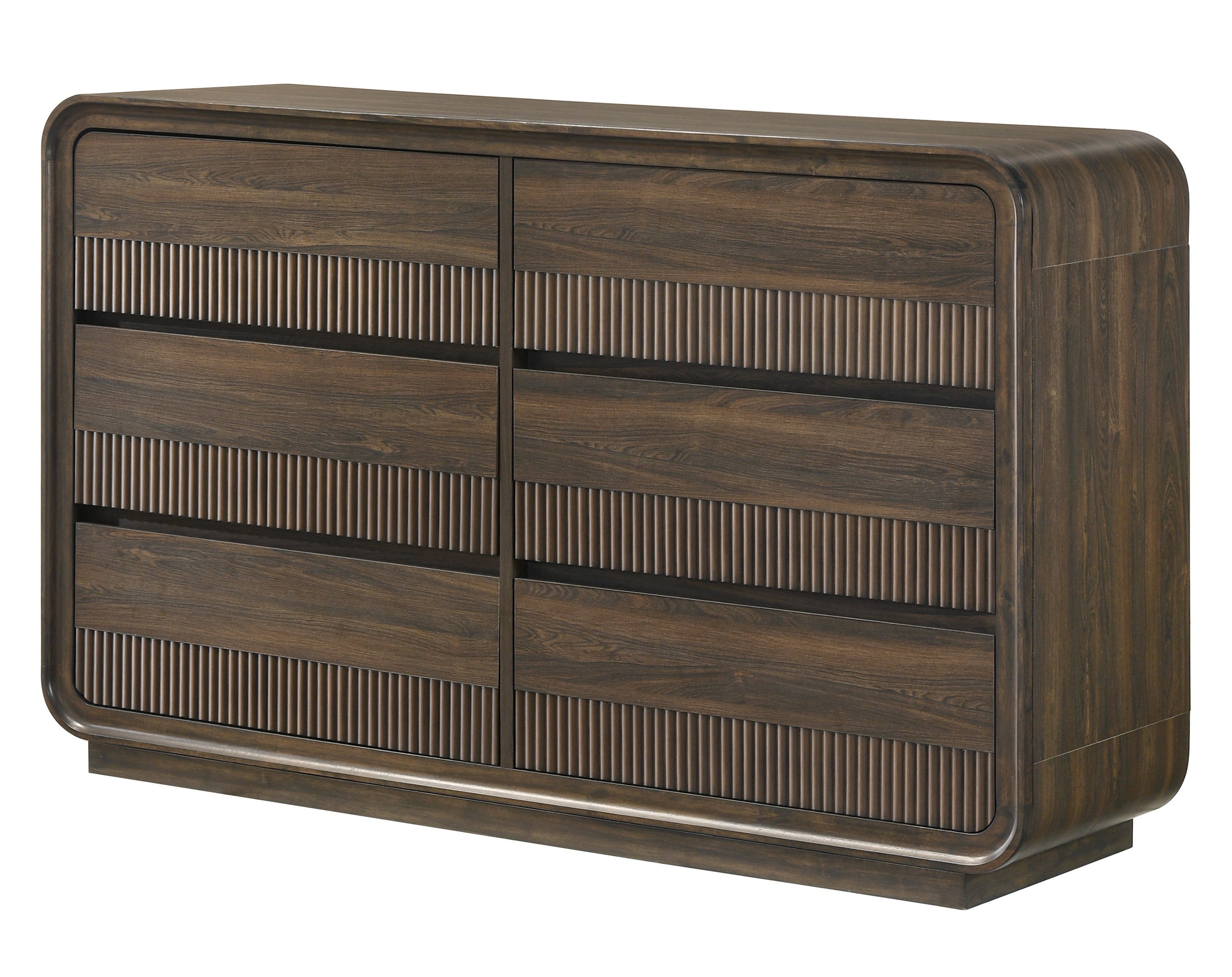 Elevate your bedroom with this stunning ensemble that seamlessly blends modern design with mid-century flair. Featuring sleek lines and a warm wood finish, this collection exudes understated elegance and sophistication. Each piece is crafted with precision, offering ample storage options that combine functionality with style. The rounded edges and stylish paneling create a harmonious look, adding unique character to your space. Transform your bedroom into a chic, inviting retreat where contemporary design meets timeless appeal, perfect for those who appreciate refined aesthetics and practical luxury.