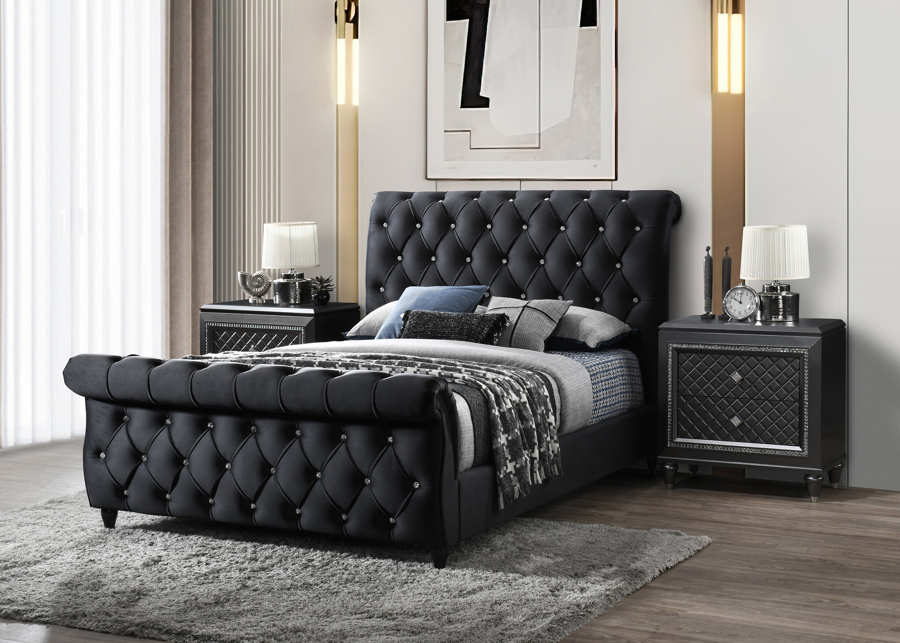 Kyrie Black King Upholstered Bed from Crown Mark - Luna Furniture