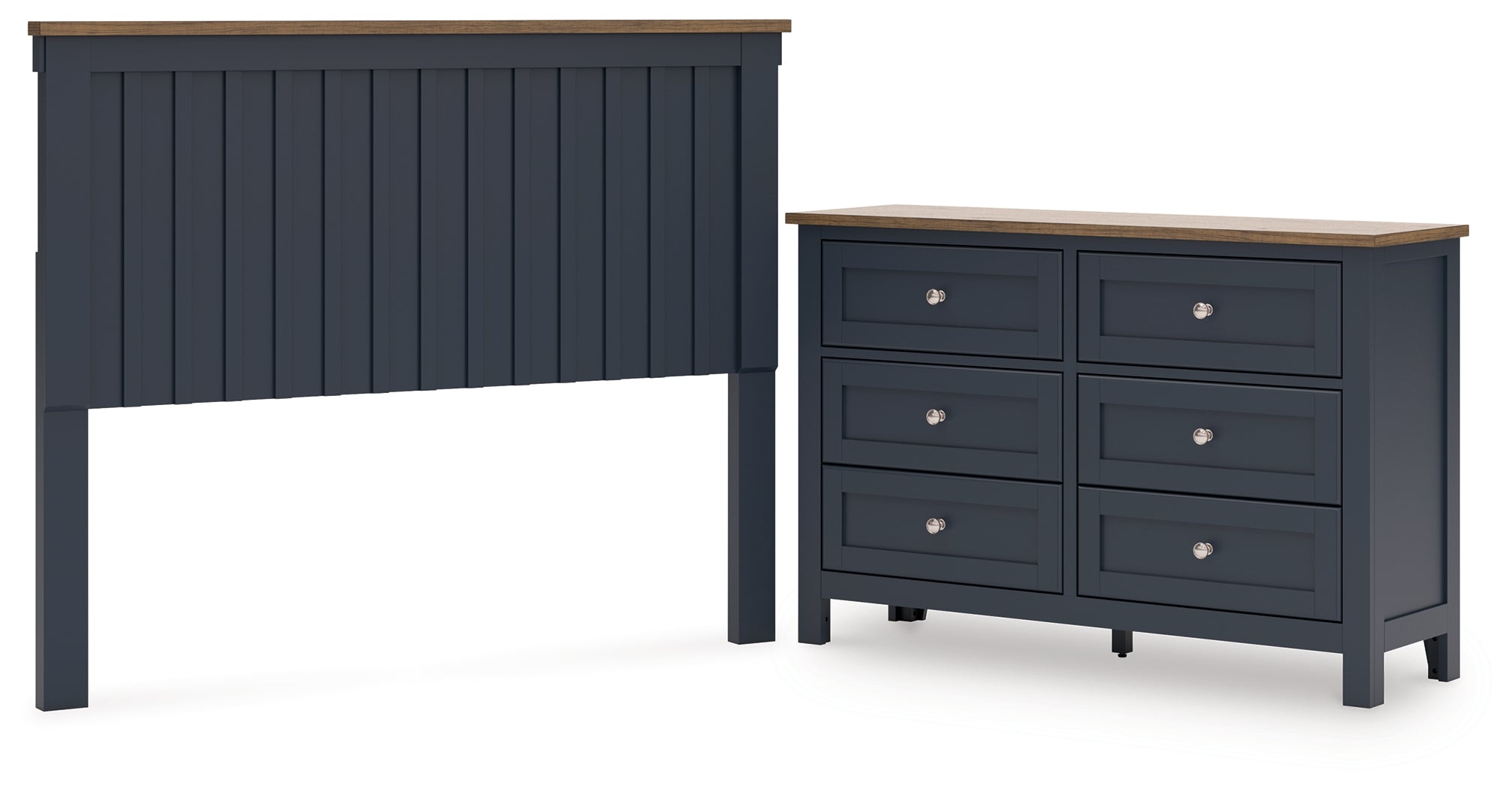 Landocken Queen Panel Headboard with Dresser in Brown/Blue