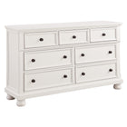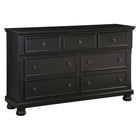 Casual transitional styling lends versatility to the placement of the Laurelin Collection in a number of bedroom settings. The dresser's black sand-through finish can transition from traditional to country casual, with antiqued bronze knob hardware punctuating the look of each framed drawer front and bun feet providing support. The hidden drawer of the dresser provides discrete storage space for your valuables.