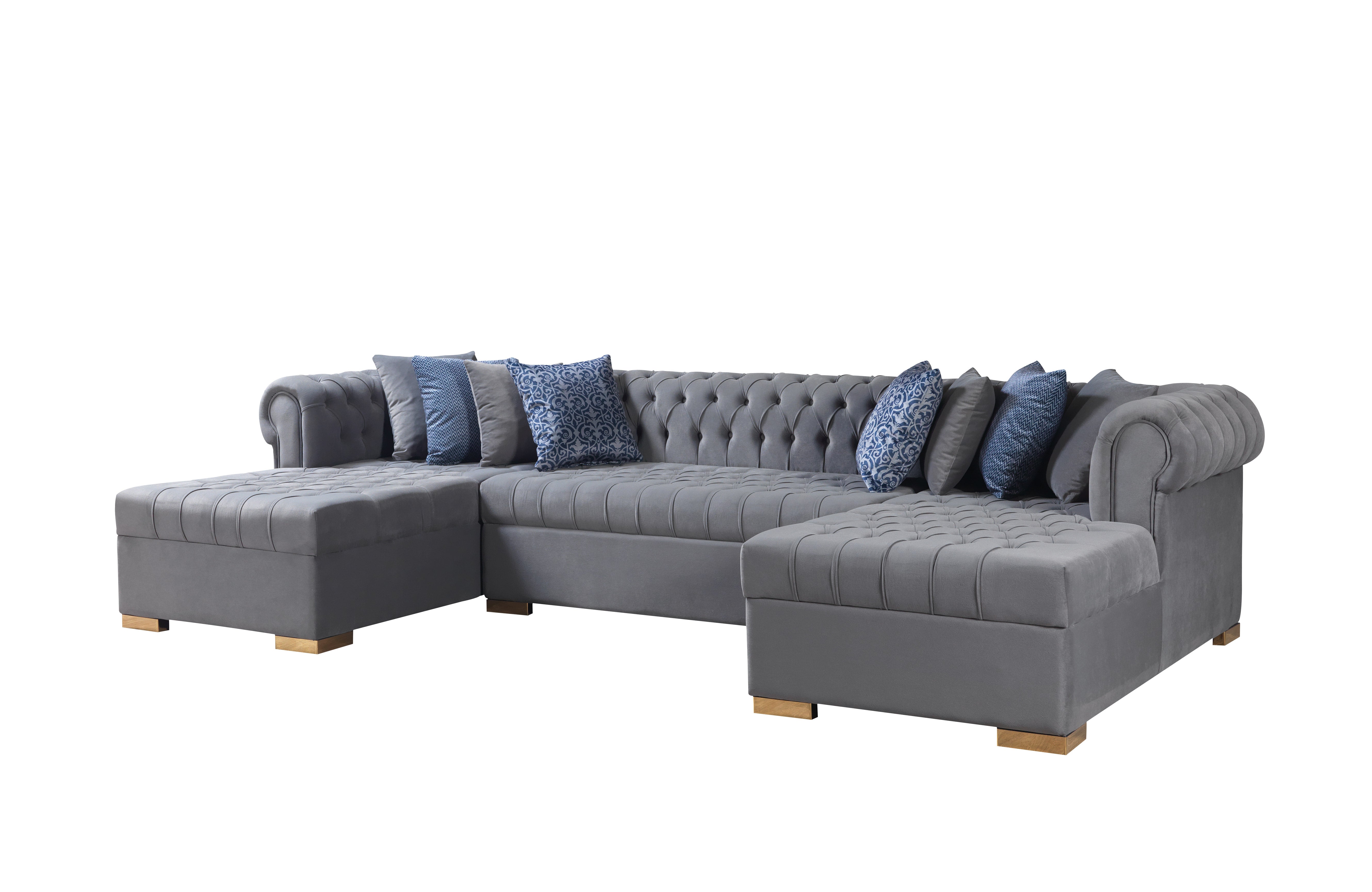 Imagine a living space that exudes both sophistication and comfort—where every gathering becomes an occasion and every quiet moment feels like a luxurious retreat. The Lauren Gray Velvet Double Chaise Sectional by Nova Furniture brings this vision to life, offering a perfect harmony of classic charm and contemporary allure. With its gracefully rolled arms, button-tufted detailing, and plush velvet upholstery, this sectional sets a new benchmark for style and relaxation. Designed for entertaining guests or indulging in cozy family evenings, the U-shaped double chaise layout invites everyone to unwind with room to spare. Whether your interior leans toward modern opulence or timeless elegance, the Lauren Sectional adapts effortlessly, making it a showpiece in any decor aesthetic.