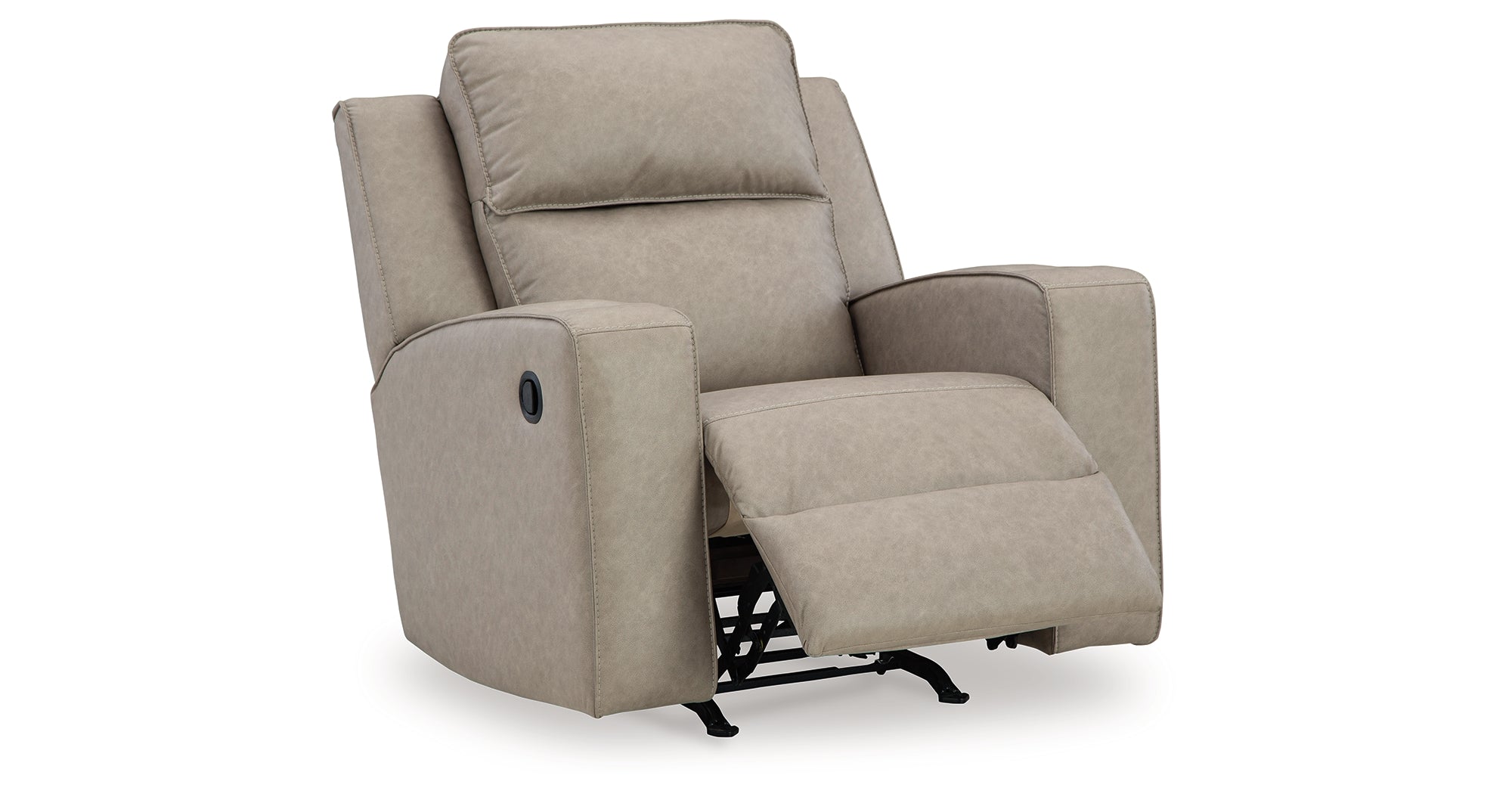 Indulge your lust for comfort and love for contemporary design with this rocker recliner. Made for easy everyday living, it’s upholstered in a heavyweight padded faux leather and accented with contrast jumbo stitching for fashion-forward flair. Sleek track arms elevate the look with a touch of modern sensibility. — Luna Furniture introduces Lavenhorne Recliner to enhance the beauty of your living spaces.