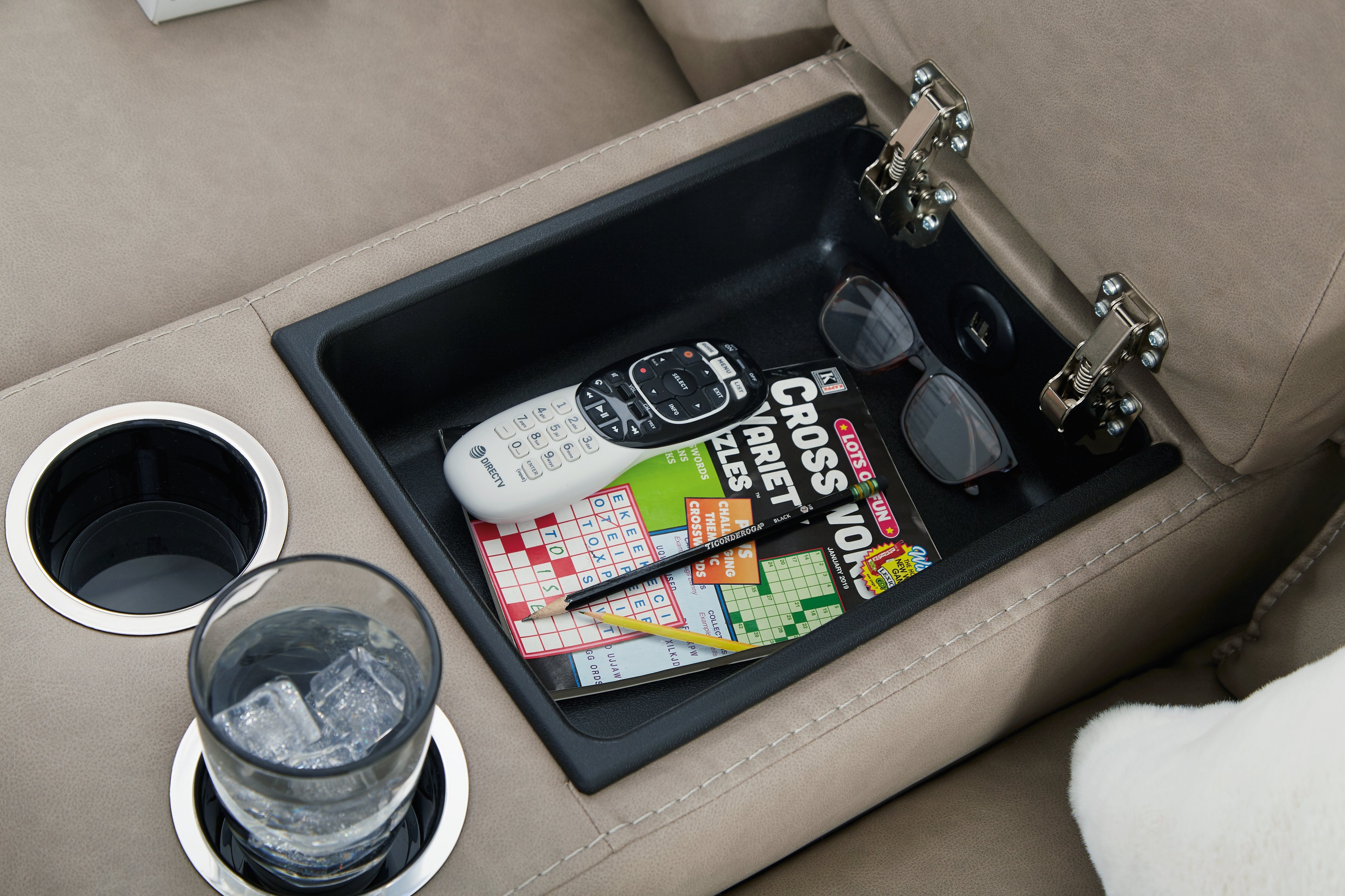 • Upholstery Features: Cup Holder • Drop Down Table • Jumbo Stitch • Reclining • Storage • USB Port/Charger • Manual Reclining