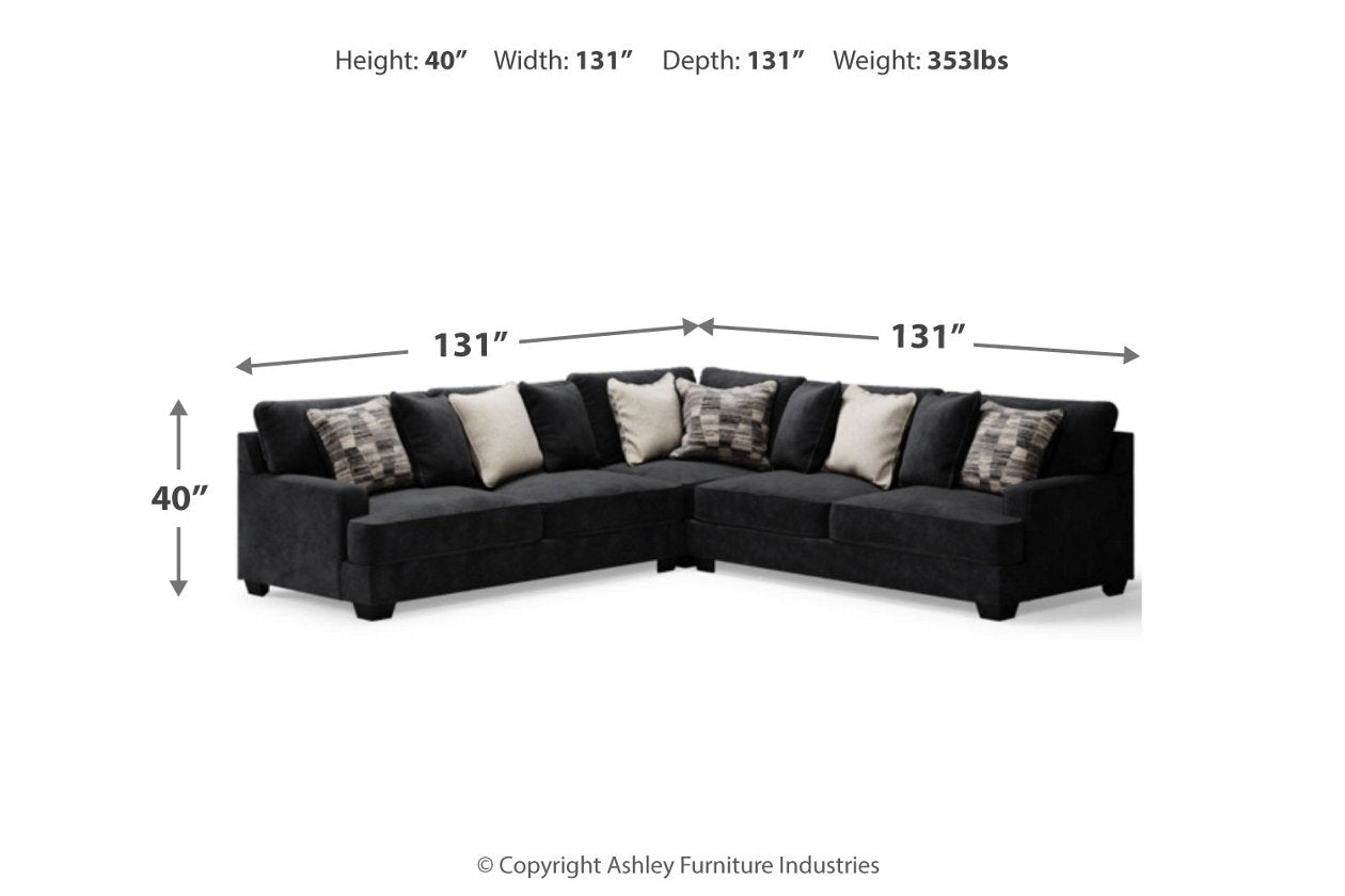 Lavernett Charcoal 3-Piece Sectional and Oversized Ottoman