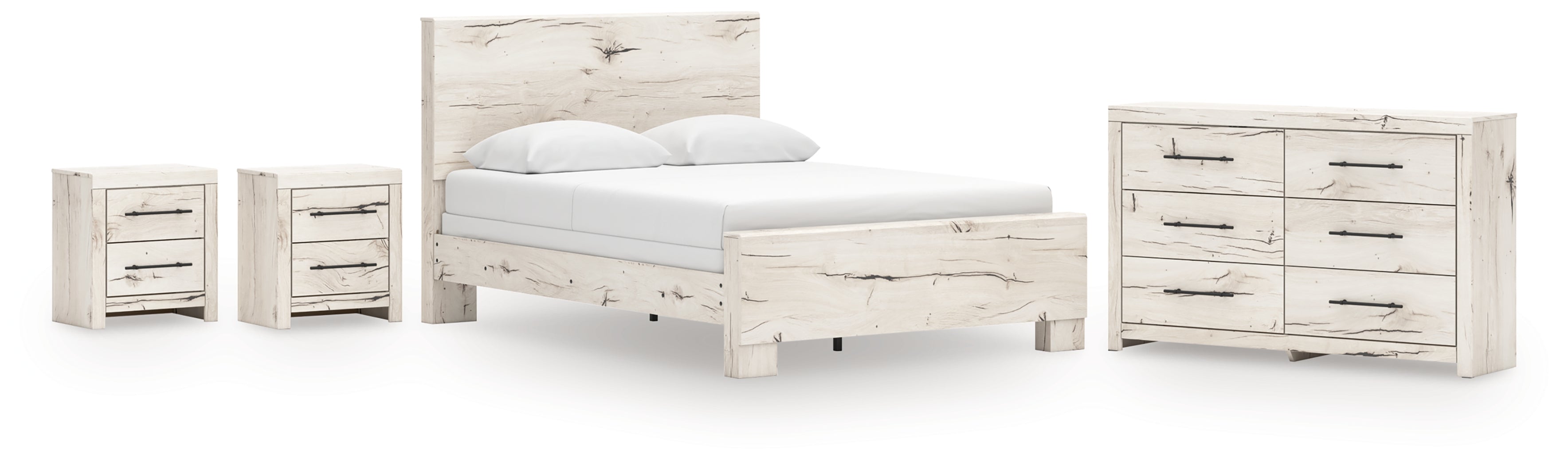 Lawroy Queen Panel Bed with Dresser and 2 Nightstands in Light Natural