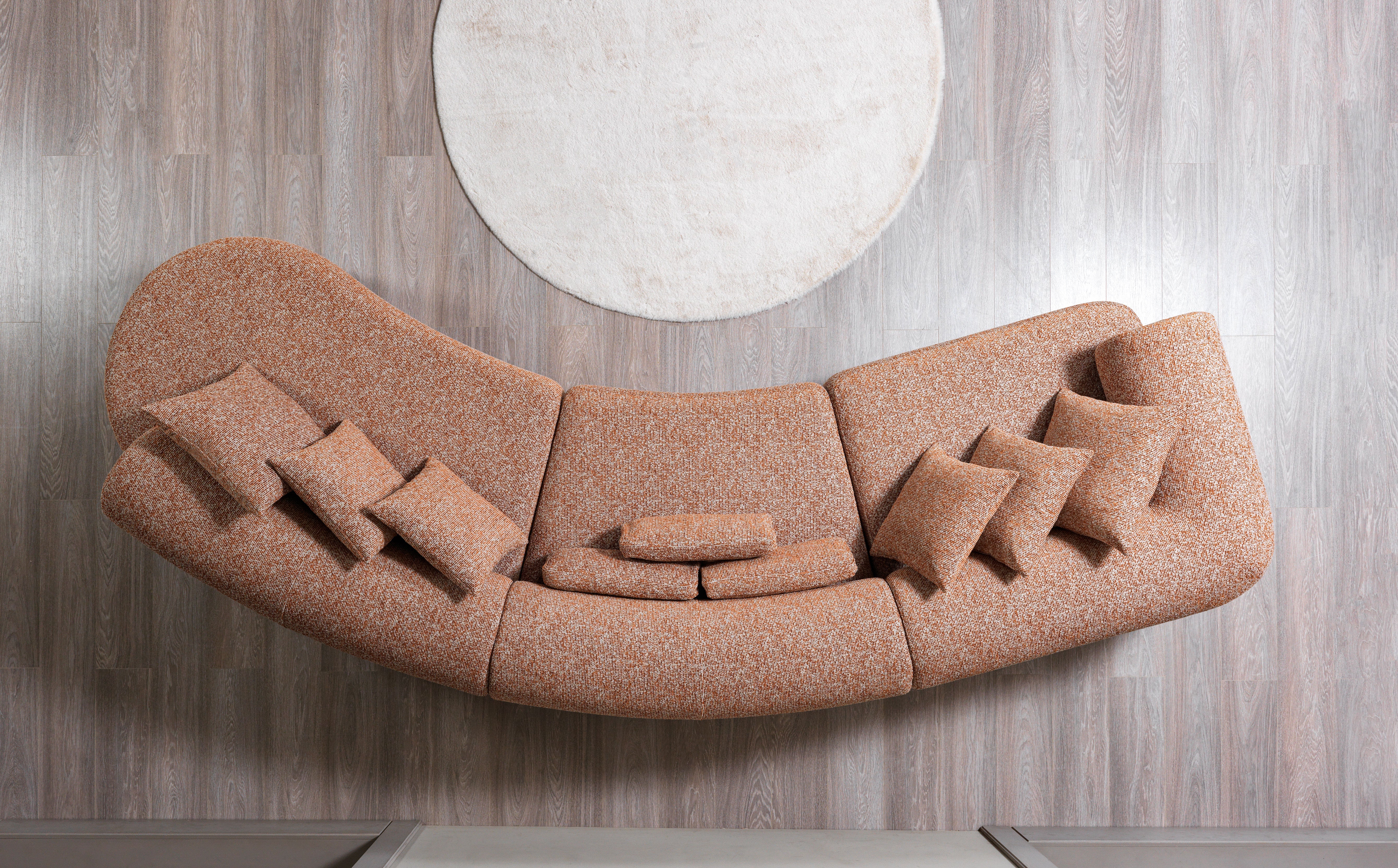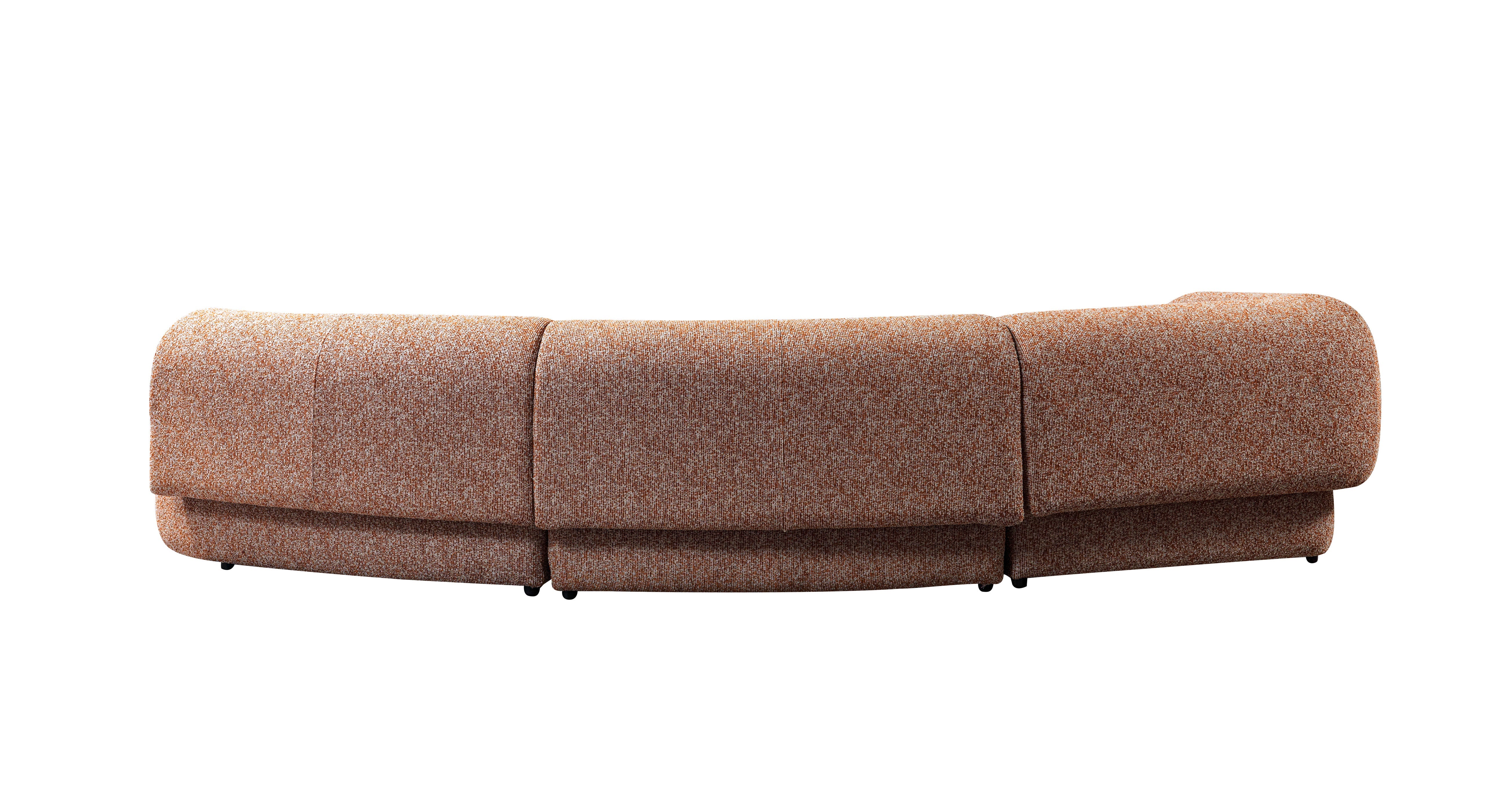 Transform your living space with the Lena Orange Boucle 3-Piece Curved Sectional, a modern masterpiece designed for both indulgent comfort and dynamic visual allure. Imagine welcoming friends and family into a spacious living room where warmth and style take center stage—this sectional, with its vibrant burnt-orange boucle fabric and fluid curves, becomes the heartbeat of any gathering. Crafted to serve as the ultimate relaxation zone or the lively hub for entertaining, the Lena sectional effortlessly bridges contemporary aesthetics with luxurious support. Whether you're sinking into plush seats after a long day or hosting festive evenings, each element is meticulously constructed to elevate your décor. Styled for modern, open-concept homes and sophisticated apartments, the Lena sectional’s bold silhouette and soft, tactile upholstery redefine what it means to truly unwind in style. Luna Furniture introduces Lena Orange Boucle 3-Piece Curved Sectional to enhance the beauty of your living spaces.