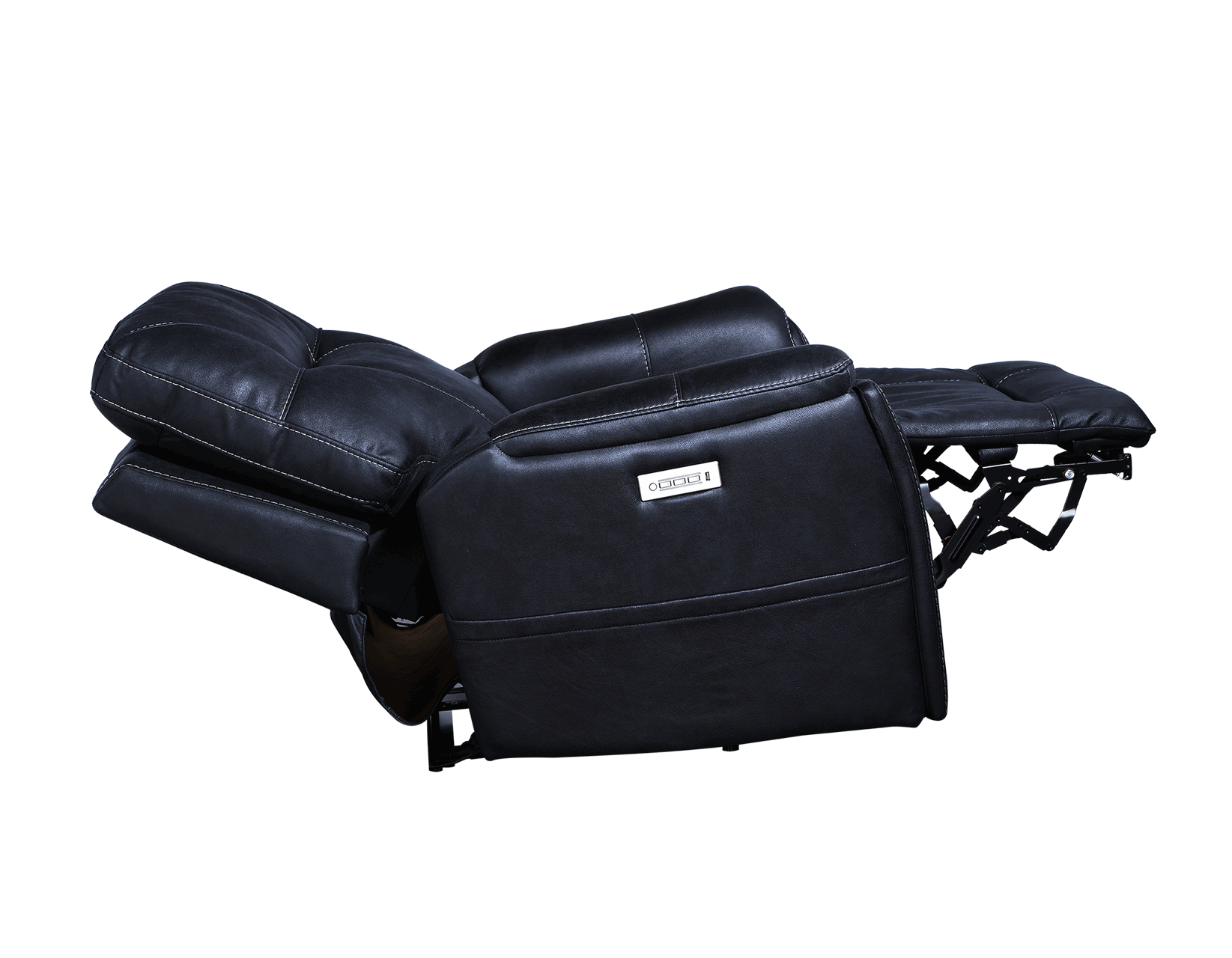 Lexington has the bells and whistles that will make it your favorite chair in no time. This triple-power recliner features a power headrest, power footrest, and power lumbar along with hidden, lighted cupholders! This reclining all-star also has styling with transitional design and a beautiful Ocean Blue leatherette cover that is pillow-soft to the touch.