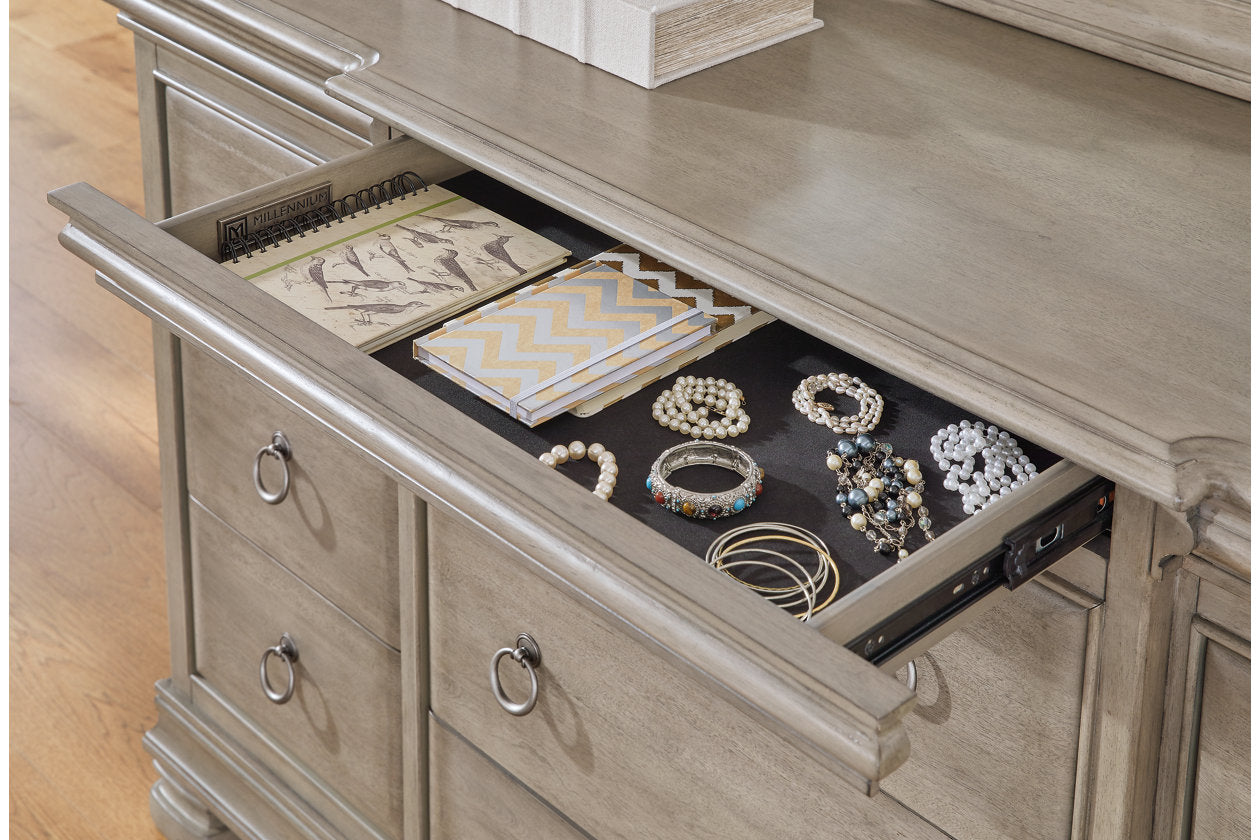 Traditional design motifs, redefined for today’s trends. Inspired by timeless Louis Philippe styling, this dresser with mirror is distinguished by its stunning attention to detail. You’ll find the light gray finish encourages an attitude of laid-back luxury. Complete with spacious storage and a jewelry drawer, it reigns over your bedroom with an air of casual elegance. Luna Furniture introduces Lexorne Dresser and Mirror to enhance the beauty of your living spaces.