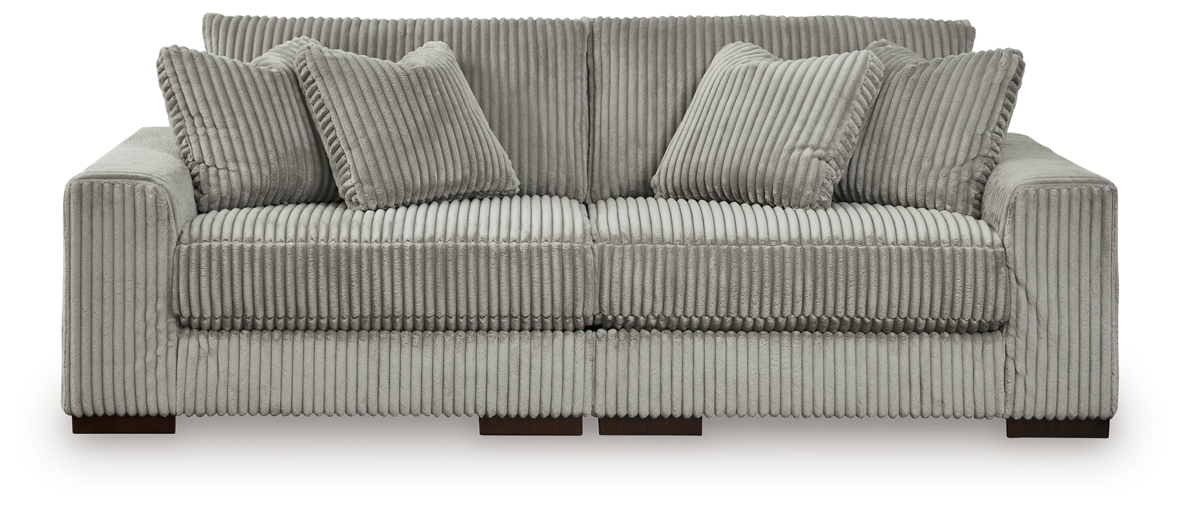 Plush and posh. Showcase your eye for on-trend texture with the statement-making cord upholstery of this sectional loveseat. Its stunningly soft fabric entices in a warm neutral hue, complementing contemporary color palettes. Sink into the cushions and plan to stay a while—this cozy living room centerpiece highlights your high-end approach to comfort and style. Luna Furniture introduces Lindyn 2-Piece Sectional Sofa to enhance the beauty of your living spaces.