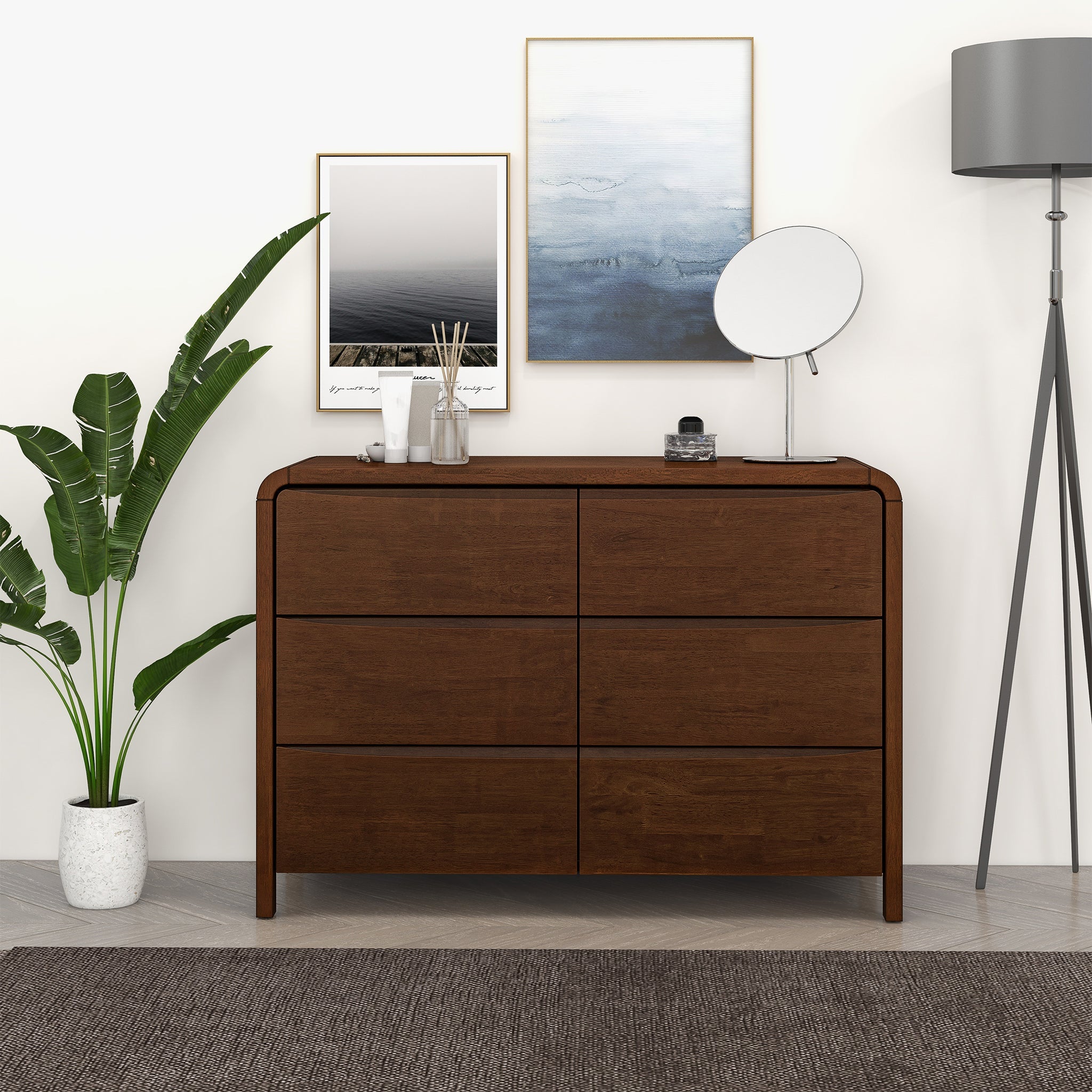 The Mid-Century Modern 6-drawer dresser is a stunning addition to any bedroom, combining timeless design with functional storage. Crafted from solid wood, this dresser exudes durability and quality, ensuring it will withstand the test of time. Its tall structure makes it an ideal choice for those seeking ample storage space without compromising on style. With spacious drawers, this dresser provides plenty of room to organize and store your belongings. The dresser drawer organizer further enhances its functionality, allowing you to arrange your clothes, accessories, and other essentials neatly. No more rummaging through cluttered drawers – everything will have its designated place. The wood dressers for the bedroom are not only practical but also add a touch of elegance to your living space.