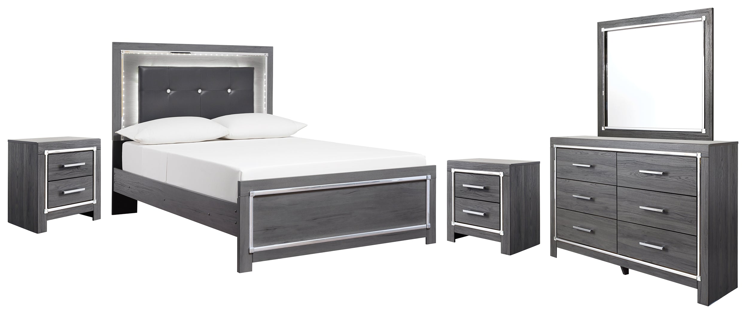 Lodanna Full Panel Bed with Mirrored Dresser and 2 Nightstands in Gray