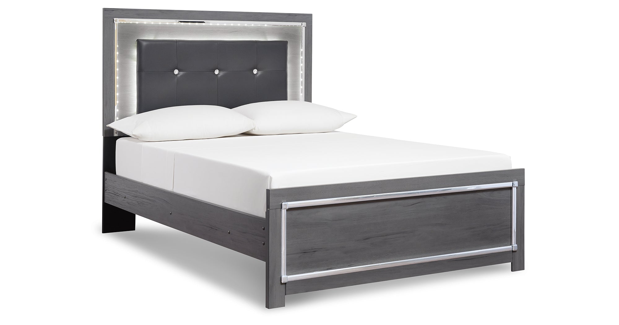 Lodanna Queen Panel Bed with Mirrored Dresser, Chest and 2 Nightstands in Gray