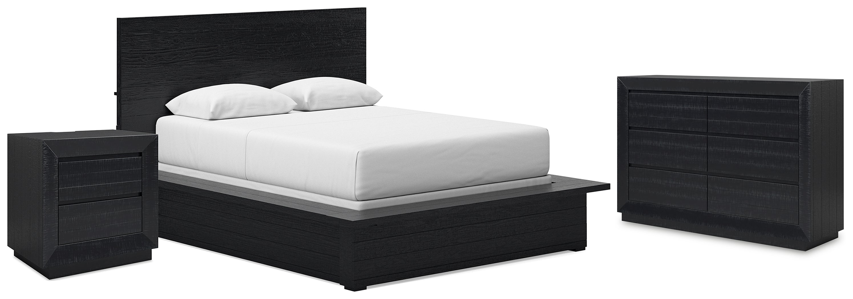 Londer Queen Panel Bed with Dresser and Nightstand in Black
