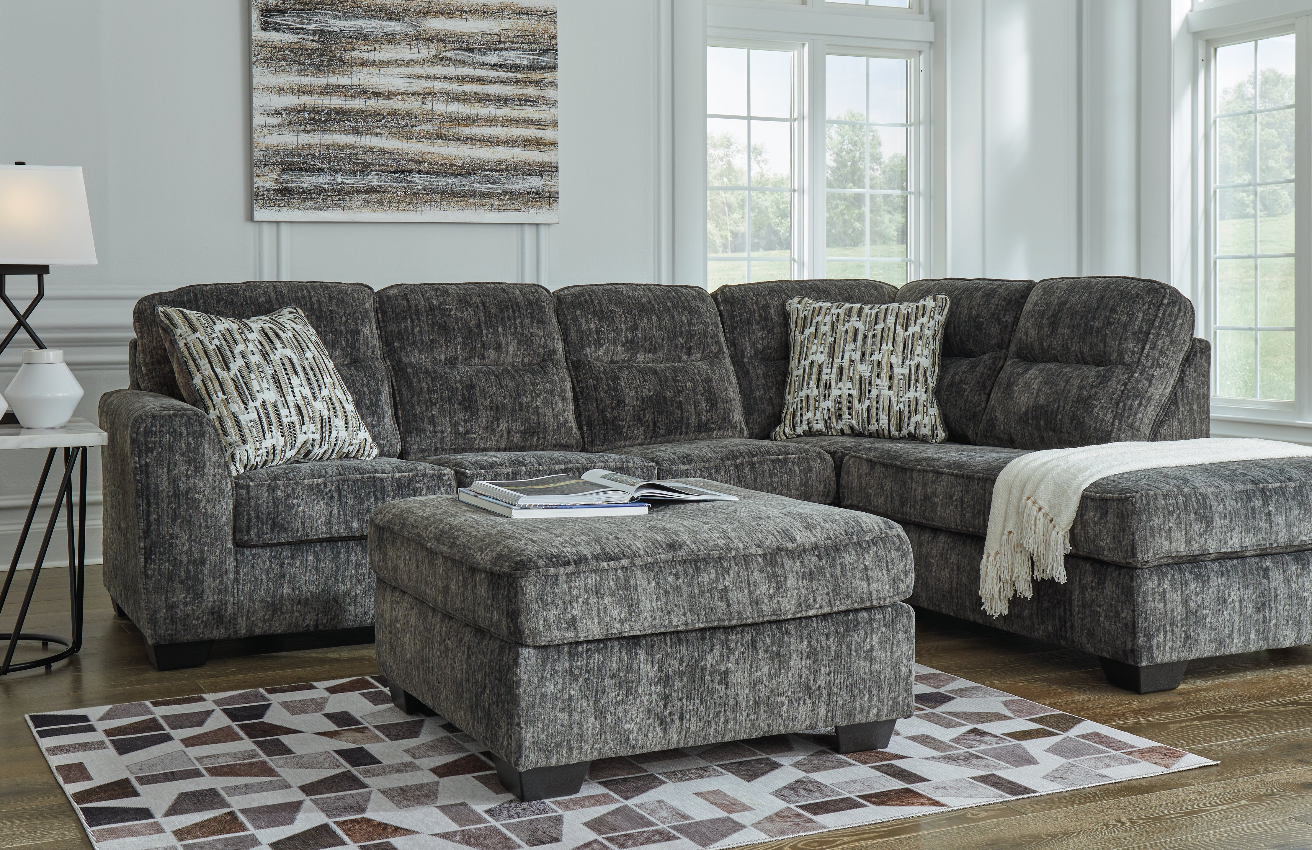 Lonoke Gunmetal 2-Piece Sectional with Ottoman