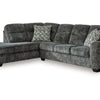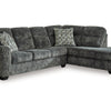 This sectional with chaise speaks to those drawn to fresh, contemporary style with richly neutral appeal. Subtle and sophisticated, the plush upholstery and dark tri-block legs are a natural complement for so many color schemes. On-trend track arms provide great support. Curling up on this sectional to enjoy a night in is never out of the question. Luna Furniture introduces Lonoke 2-Piece Sectional with Chaise to enhance the beauty of your living spaces.